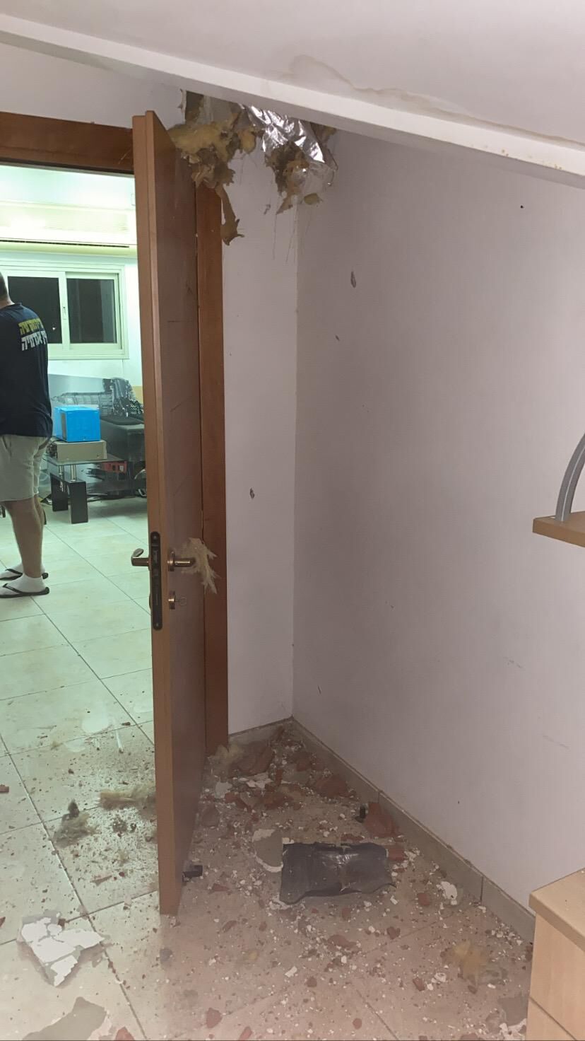 בשכונת נווה דקלים נפל זביל (לא רקטה) לתוך מבנה בית וגרם נזק בתקרה