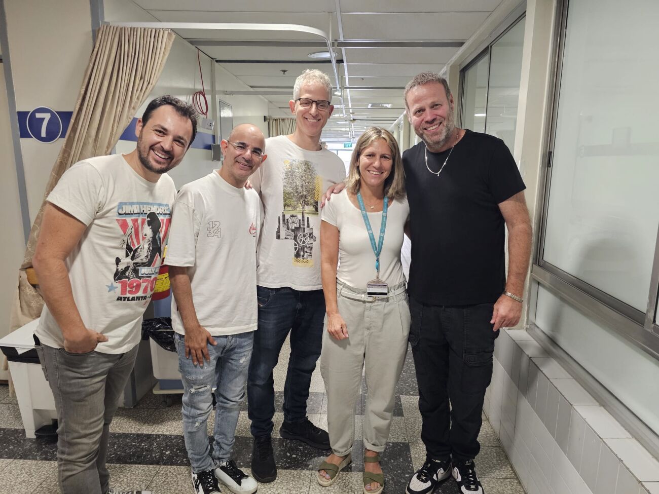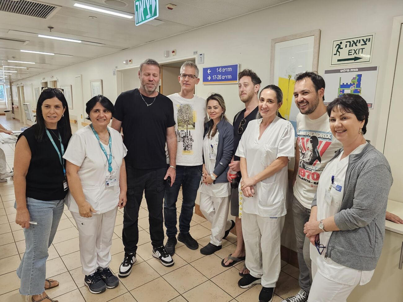 הקומיקאים אדיר מילר, רשף לוי, יונתן ברק, גיורא זינגר ומני עוזרי הגיעו לבקר ולשמח את הפצועים המאושפזים בביה"ח שמיר אסף הרופא