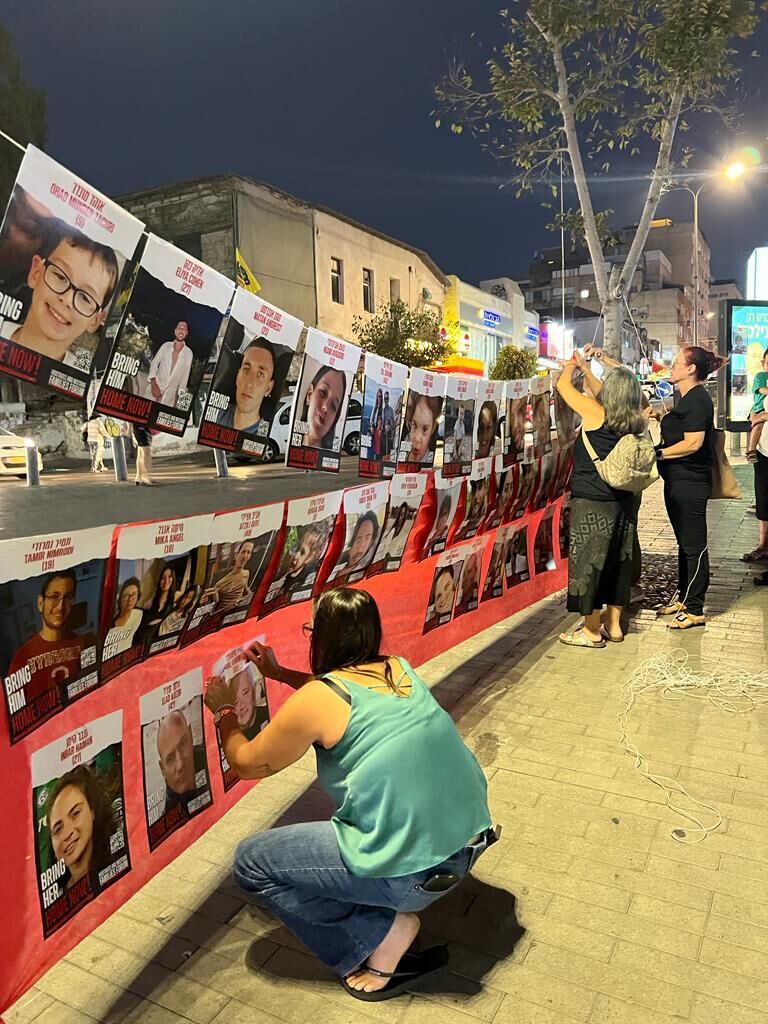 ביוזמת ריקי דוסטרי רחבת באר המושבה בראשון לציון הפכה למיצג הזדהות עם משפחות החטופים בה נתלו תמונותיהם של החטופים בעזה; היום חמישי 2.11 יוצב מיצג של 30 הילדים החטופים ותתקיים תפילת ערבית במקום