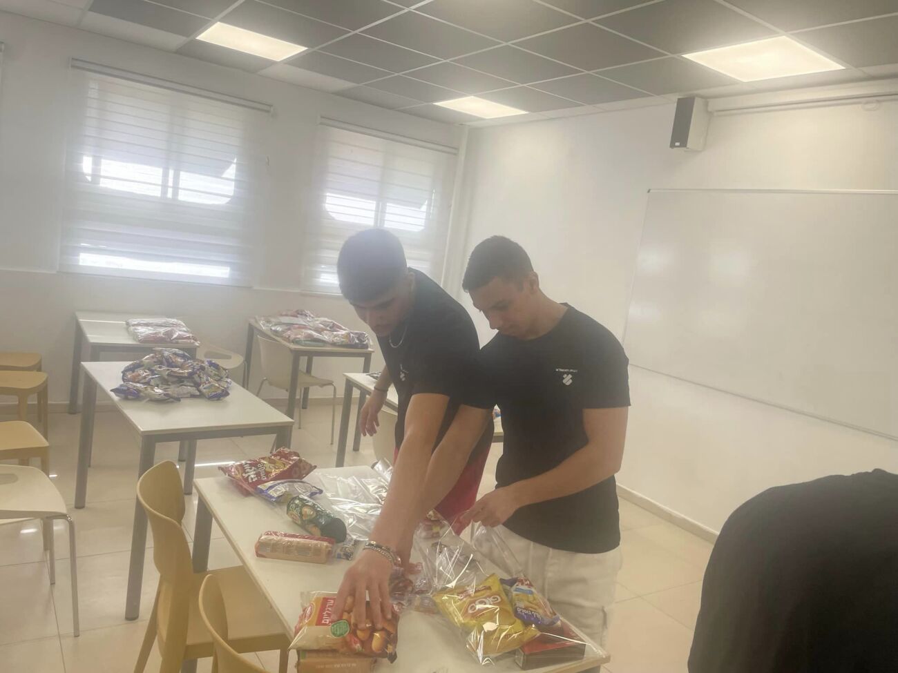 תלמידי קריית העמית בראשון לציון הכינו חבילות לתושבי הדרום המתארחים בעיר
