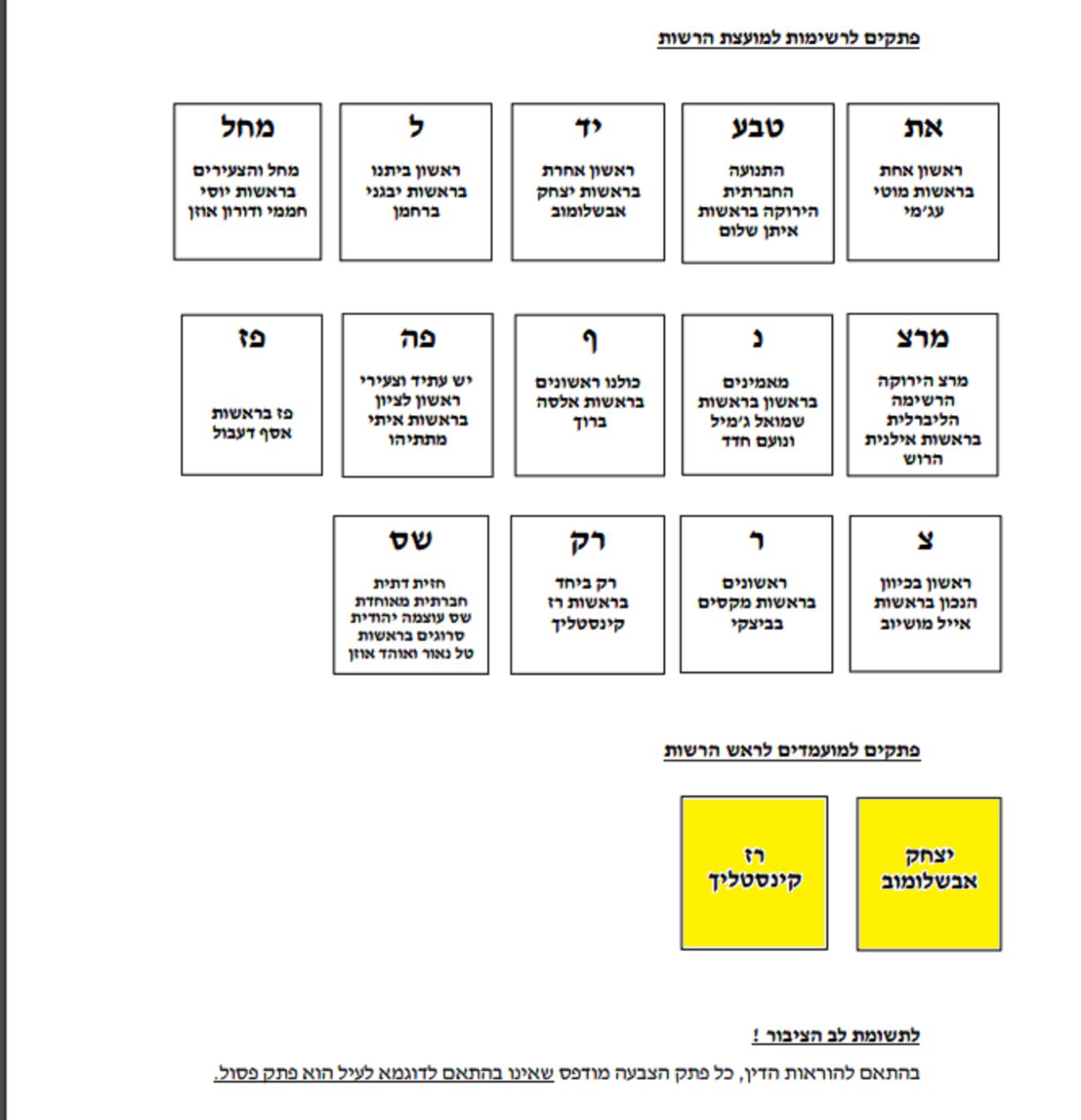 רשימת ראשונים בראשות מקסים בביצקי תיוצג בקלפי באות ר