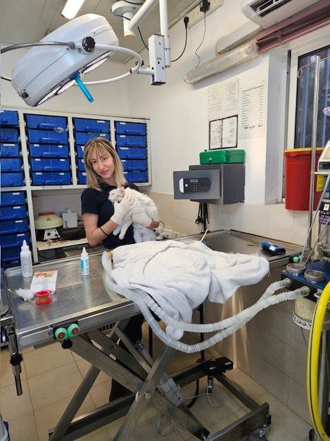 כשיצא החייל לאפטר יחד עם צוותו, הוא מסר את החתול לאמא של בת הזוג שלו שהביאה אותו לבדיקה בשירות הווטרינרי בעיריית ראשון לציון.
