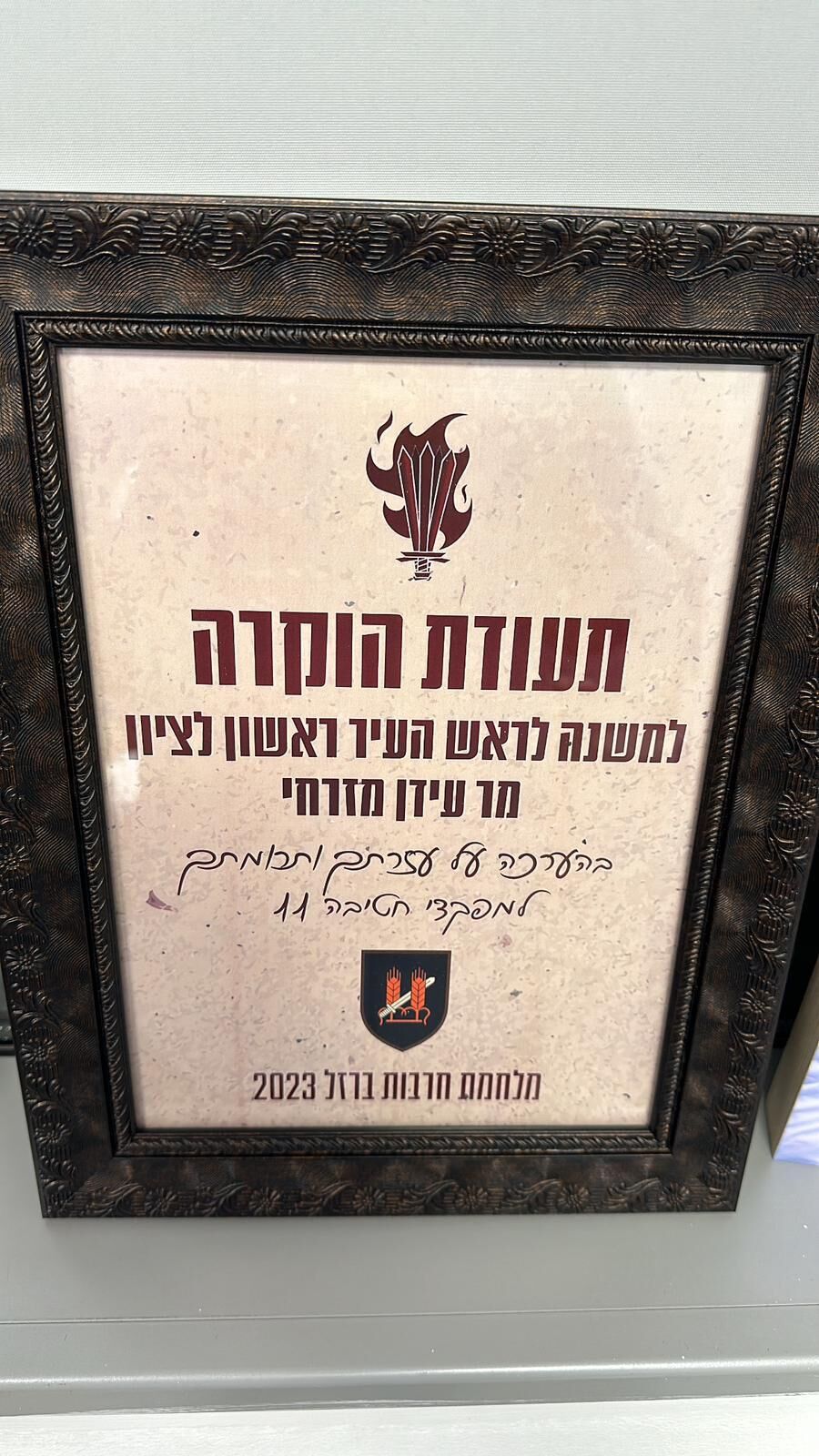 עידן מזרחי: "הבטחתי למפקדי החטיבה שגם בעתיד ידעו שעירנו יהיה להם לבית וישמח לארח אותם ביד רחבה".