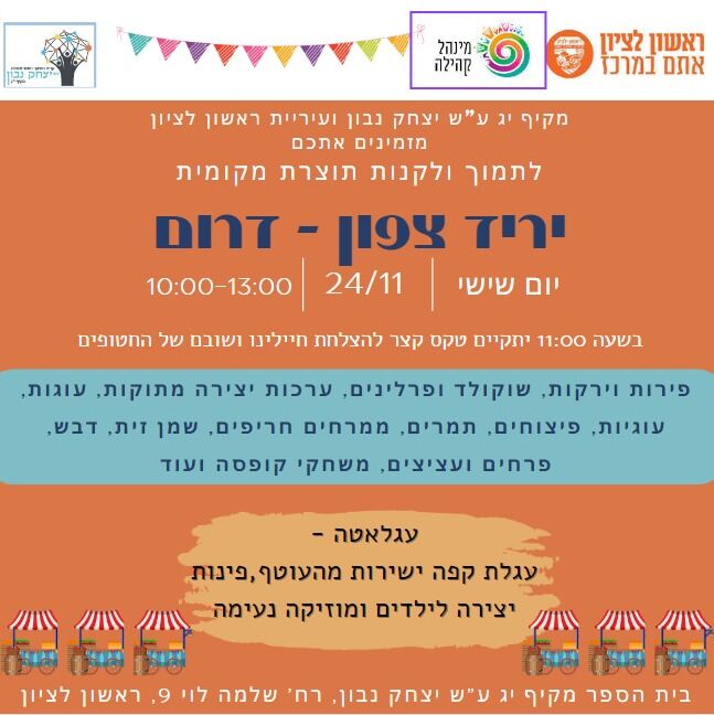 ראשון לציון נרתמת למען העסקים בדרום והצפון- כל הפרטים על ירידי החקלאות שיתקיימו היום ומחר (חמישי ושישי 23-24.11) ברחבי העיר: בקניון הזהב, רחבת ההסתדרות, קניון הזהב, מקיף י"ג ועוד