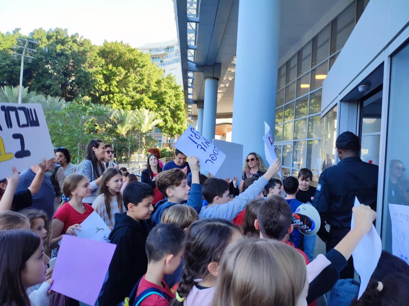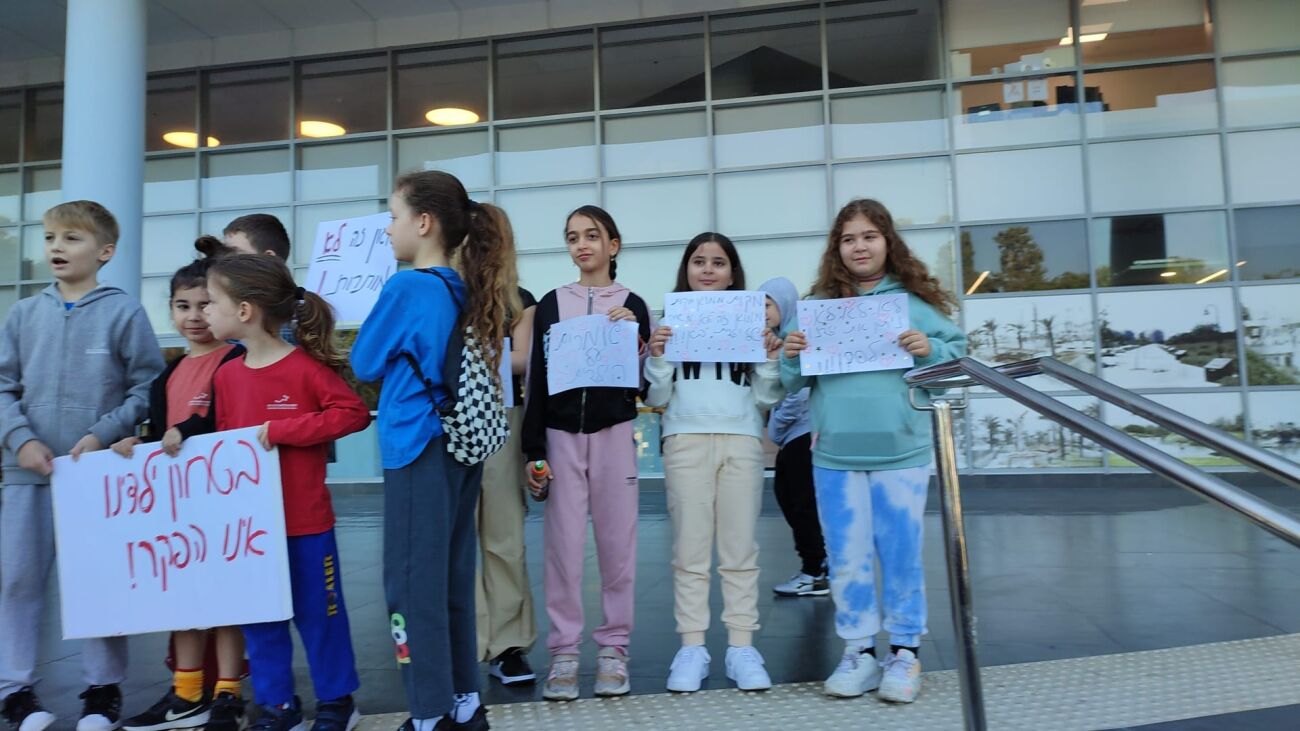 הורי ותלמידי בית ספר ידלין בראשון לציון קיימו אמש הפגנת מחאה ברחבת העירייה על כך שעדיין לא נמצא פתרון מיגון הולם שיאפשר את חזרת כלל תלמידי בית הספר לשגרת לימודים.