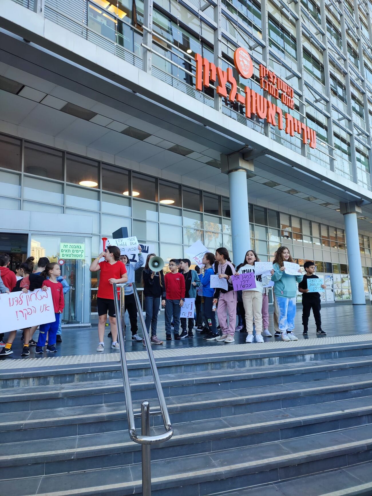 כאמור לאור המצב קראה הנהגת ההורים לקיים הפגנת מחאה בעיריית ראשון לציון שהתקיימה אמש יחד עם התלמידים. בזמן ההפגנה נציגי הנהגת ההורים נפגשו עם מחזיקת תיק החינוך, ליאל אבן זוהר שבשרה להם כי במסגרת תוכניות המיגון למוסדות החינוך לאחר חנוכה עתידה העירייה להציב מספר מבנים יבילים בחצר בית הספר אשר ישמשו ככיתות לימוד וכן ממדים יבילים אליהם יוכלו לעבור התלמידים בעת אזעקות. יעל טוענת כי למרות הבשורה מדובר על מענה חלקי מאחר והוא עדיין לא מאפשר לימודים לכלל שכבות והתלמידים וכי הם חשים כי הם לא מקבלים תשובות מספקות.