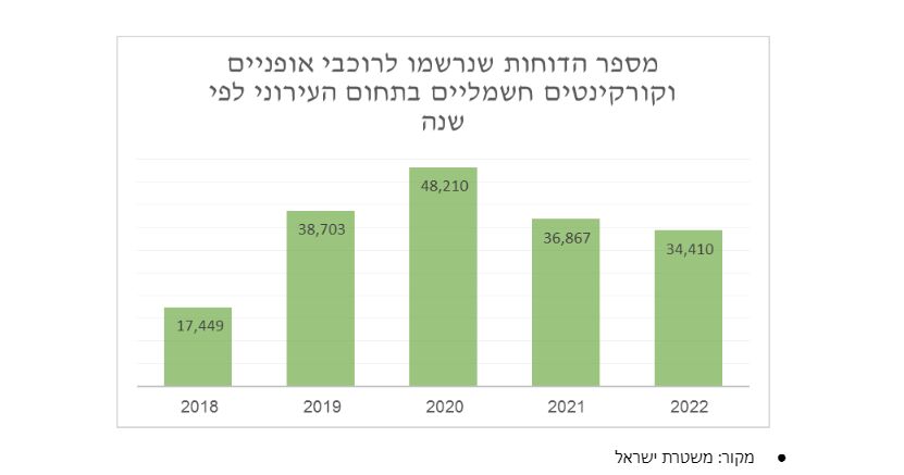 שנת 2022 – קרוב למאה דוחות לרוכבים בממוצע בכל יום