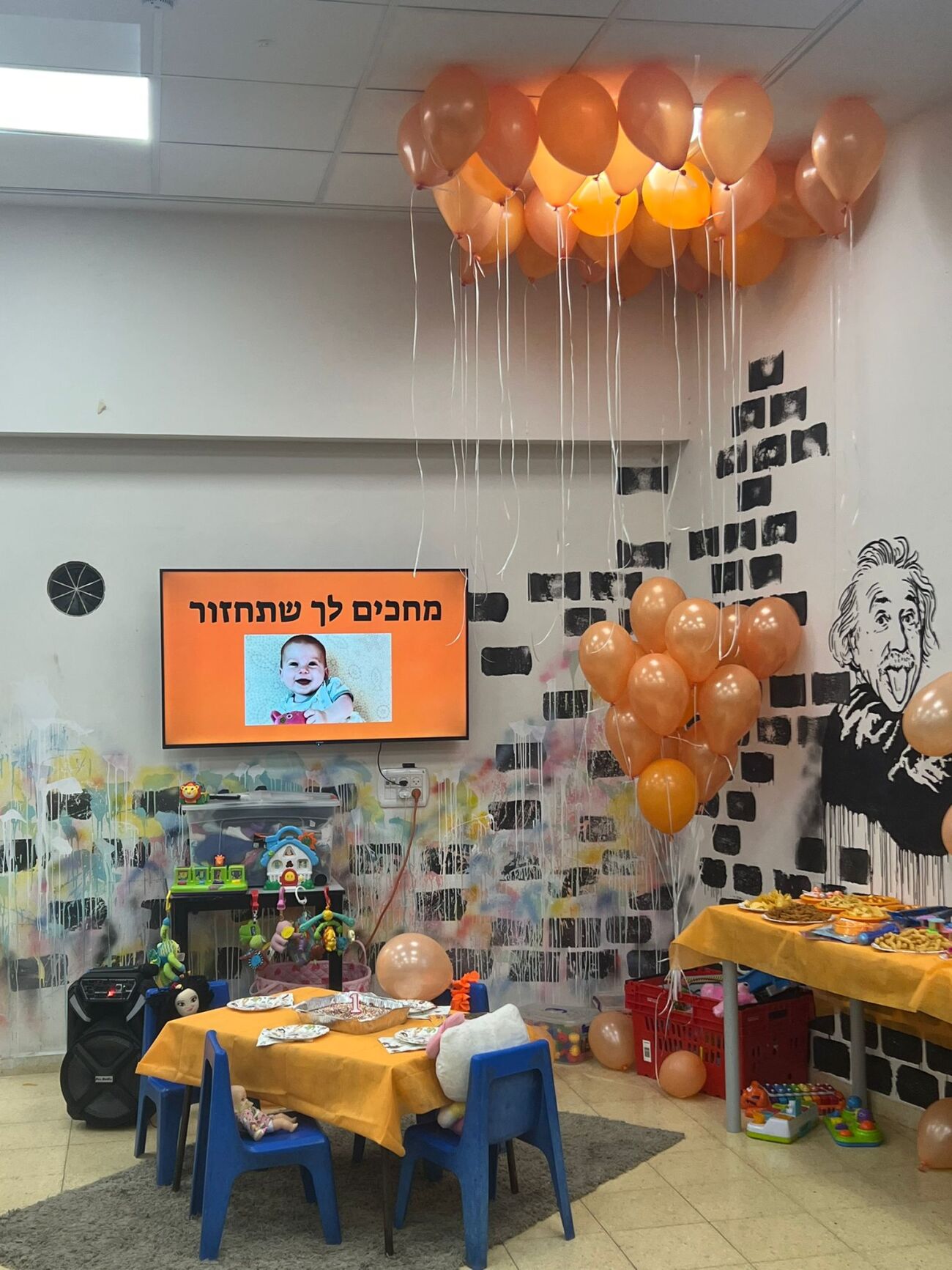מרכז נוער שקמה ציין את יום הולדת שנה לכפיר ביבס עם קיר ברכות, שולחן יום הולדת והפרחת בלונים