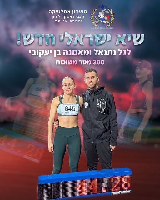שיא ישראלי חדש נרשם במועדון אתלטיקה מכבי ראשון לציון, כאשר האתלטית גל נתנאל בהדרכת המאמן בן יעקבי הצליחה לרשום זמן מרשים של 44.27 שניות בריצת 300 מטר משוכות.
