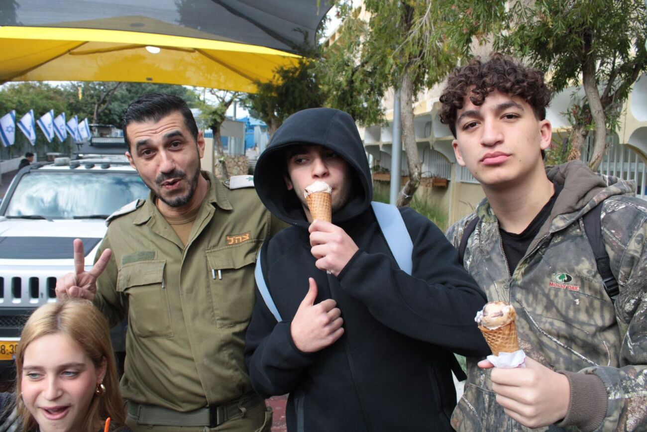 מהמילואים לכיתה: סא"ל (במיל') מנשה גור, מורה בהקמפוס הבין-תחומי ע"ש נפתלי ידלין, חזר מהמילואים במיוחד לחלוקת התעודות.
