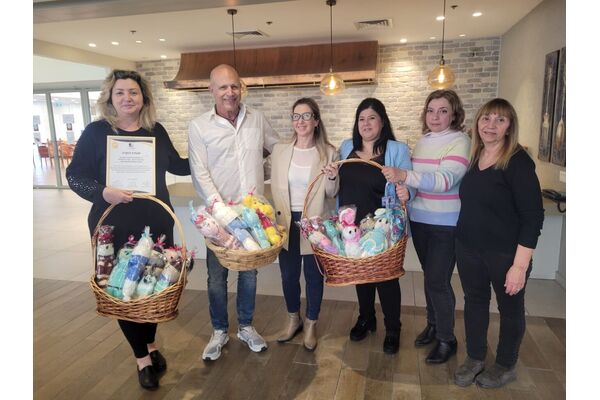 נציגות בית החולים וולפסון הגיעו לאחוזת ראשונים בראשון לציון כדי להודות לדיירות והעובדות על הבובות שסרגו למטופלים