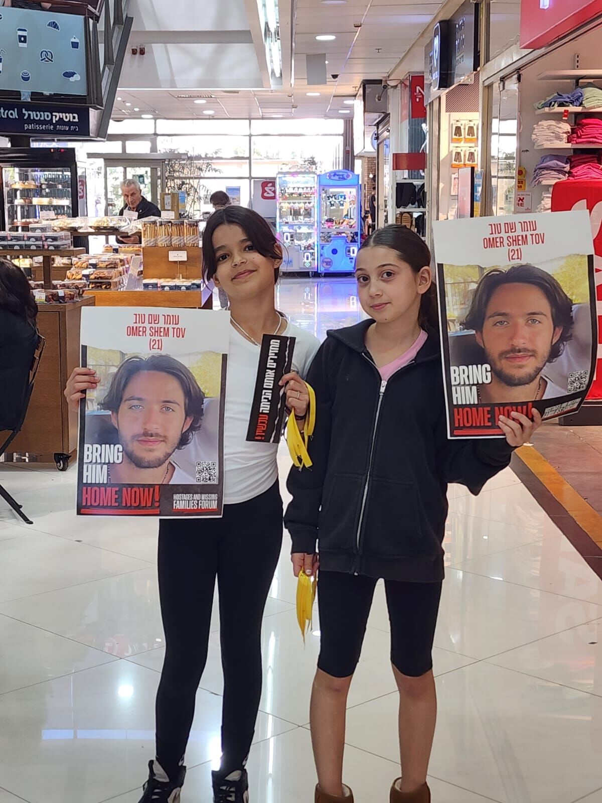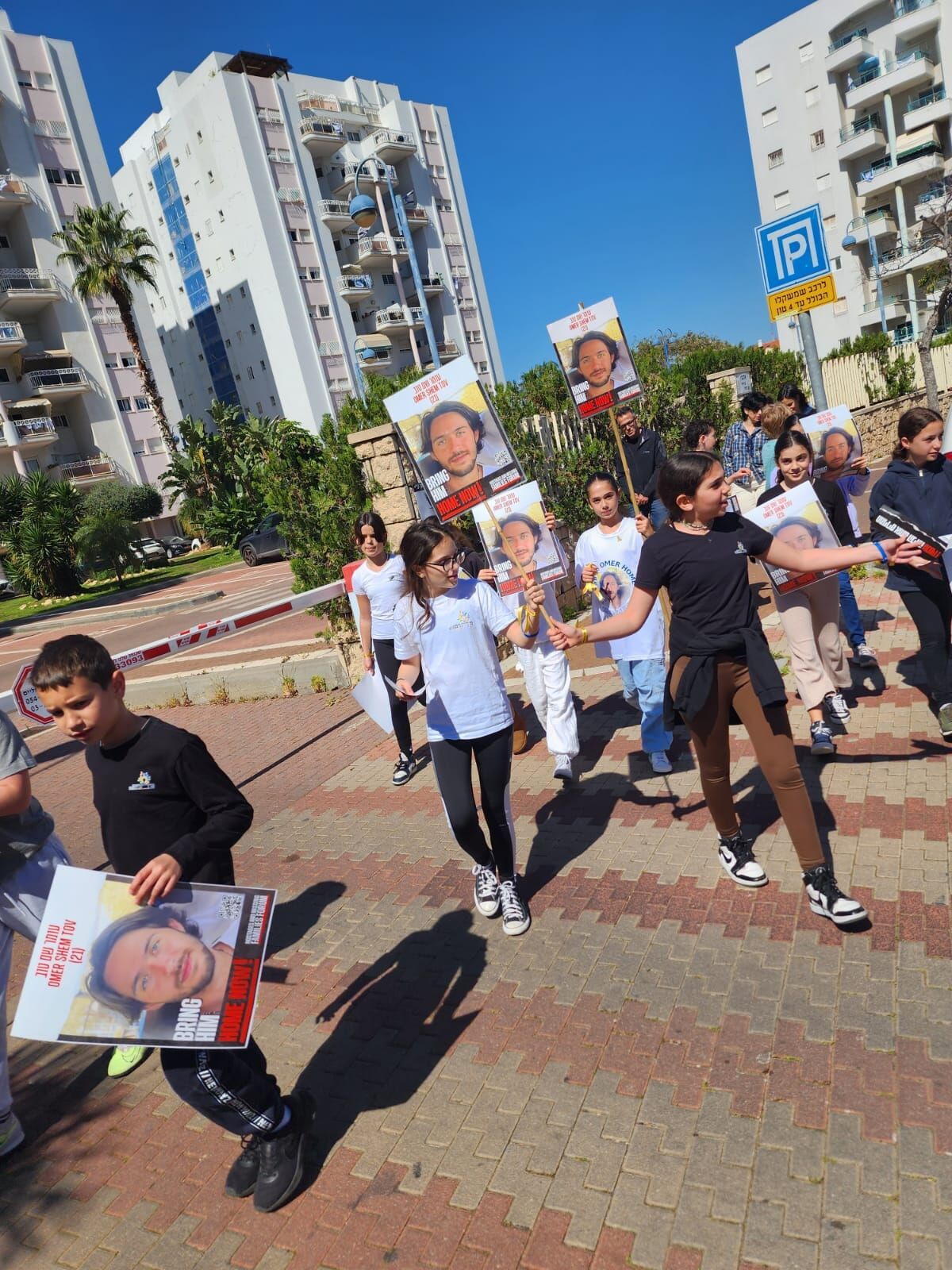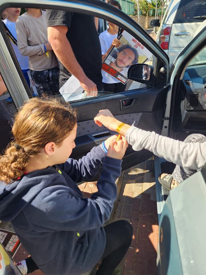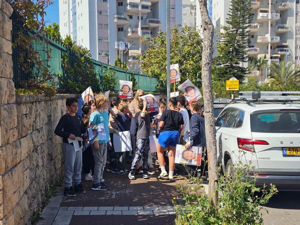 תלמידי כיתה ה2 יצאו היום לרחבי השכונה להזכיר לתושבים ש134 חטופים עדין בעזה. בין החטופים נמצא גם עומר שם טוב, בן הדוד של שירה סדי תלמידת הכיתה. התלמידים יצאו עם שלטים וחלקו לתושבים סרטים צהובים עם הקריאה חייבים להחזיר אותם עכשיו!