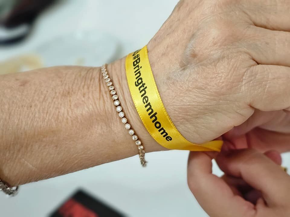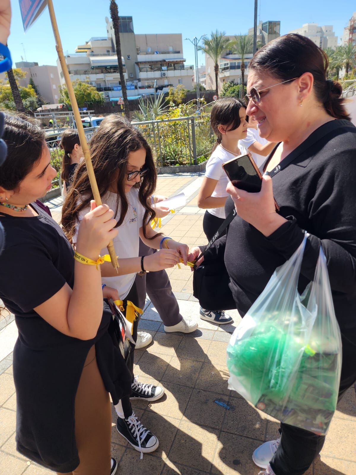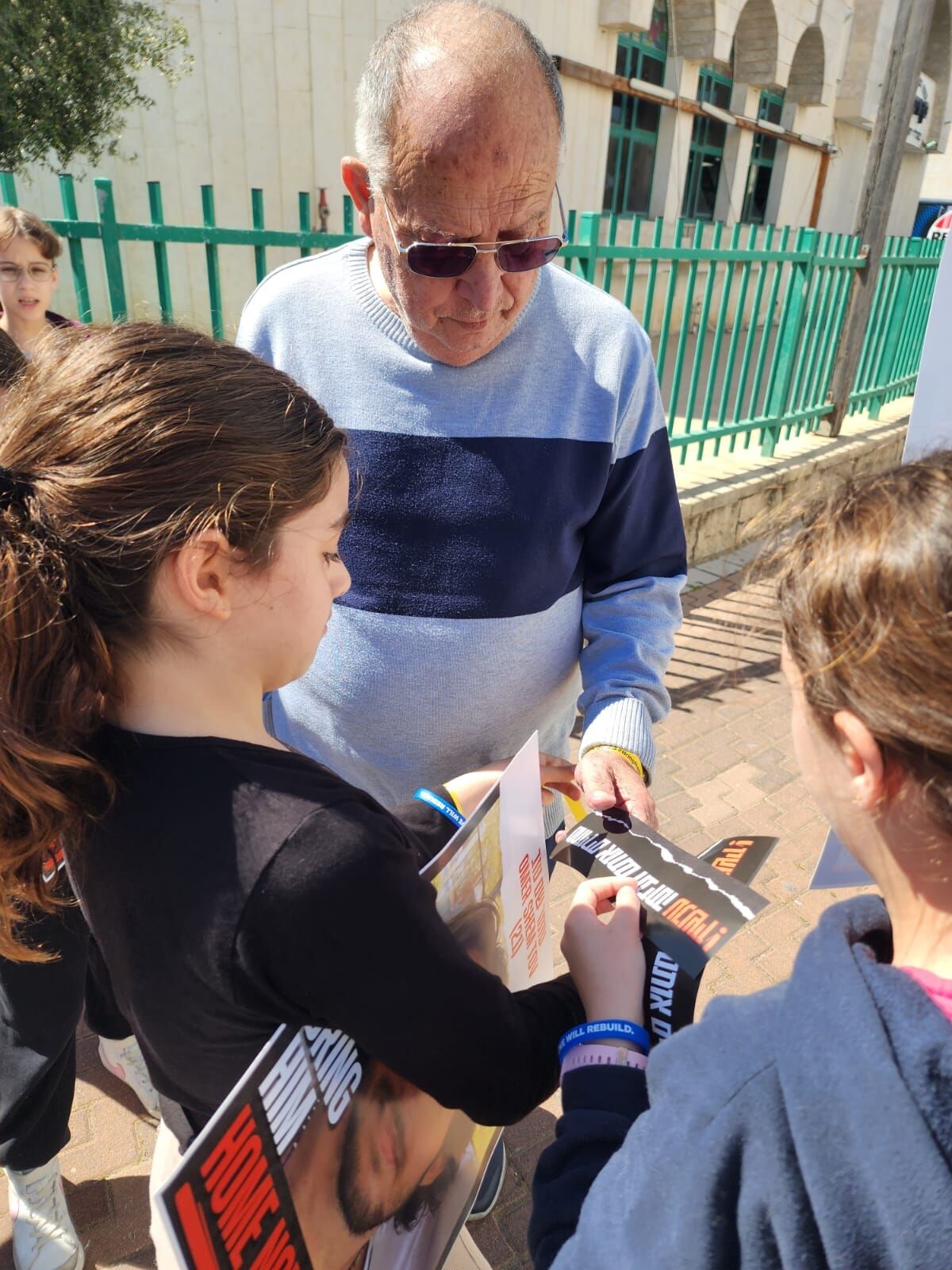 תלמידי כיתה ה2 יצאו היום לרחבי השכונה להזכיר לתושבים ש134 חטופים עדין בעזה. בין החטופים נמצא גם עומר שם טוב, בן הדוד של שירה סדי תלמידת הכיתה. התלמידים יצאו עם שלטים וחלקו לתושבים סרטים צהובים עם הקריאה חייבים להחזיר אותם עכשיו!