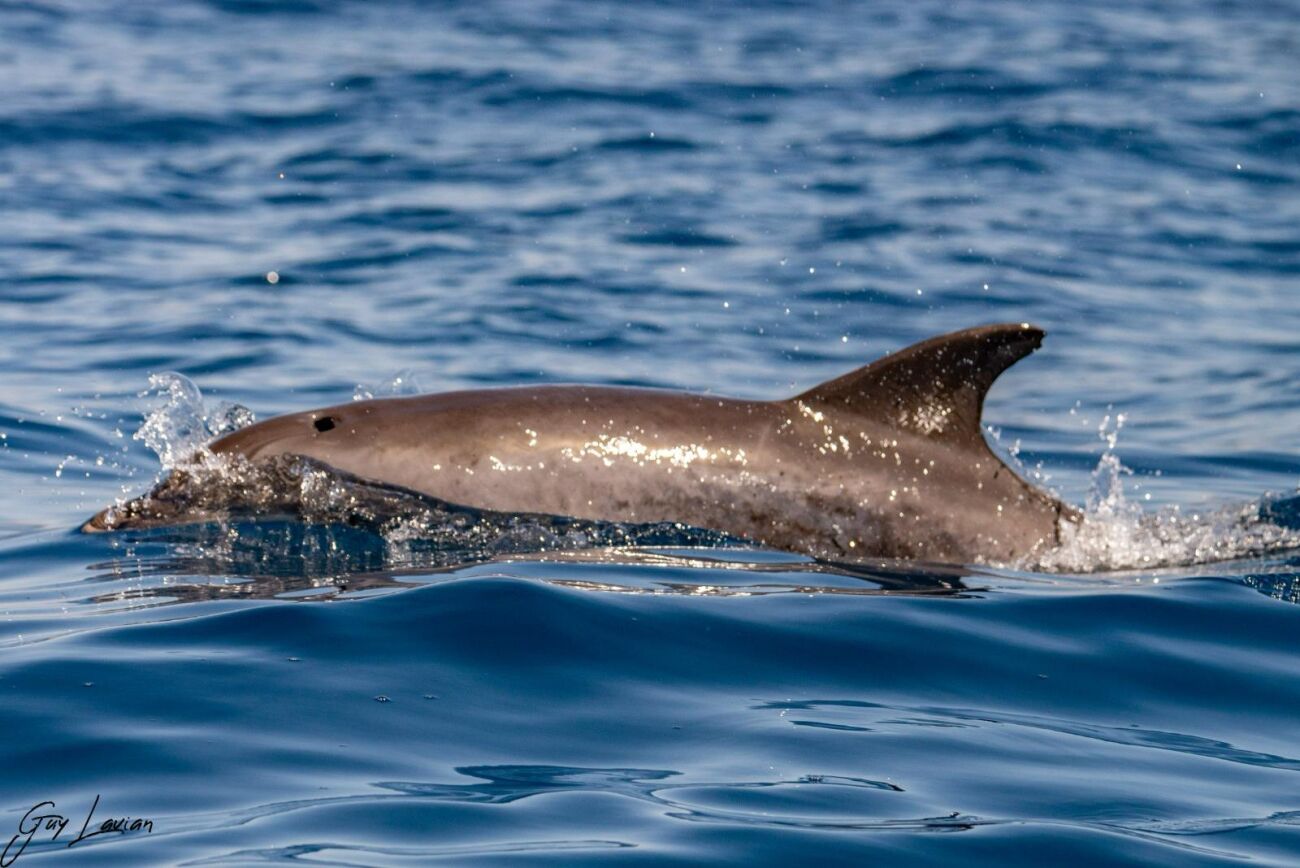 ברשות הטבע והגנים מספרים כי הדולפינן המצוי הוא היונק הימי הנפוץ ביותר בישראל. מבנה גופו מלא ומגושם וצבעו אפור עד חום, עם בטן בהירה. חרטומו קצר ועבה, והוא מופרד על ידי כפל בולט מקדמת הקדקוד. אורכו 2.5-3.5 מטרים. להקה ממוצעת מונה חמישה-שישה פרטים ומורכבת מנקבות וגורים או מצעירים משני הזוויגים. הזכרים שוחים בגפם או בזוגות וחוברים ללהקות מזדמנות. הדולפינן המצוי חי מעל מדף היבשת ולעתים פוקד את הים העמוק.