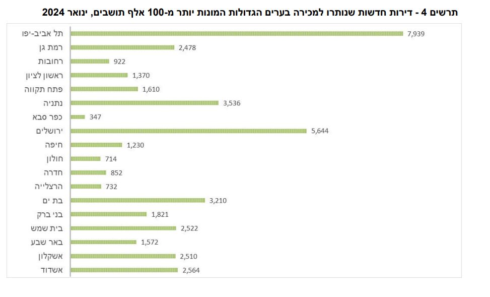 כך עולה מנתוני הלמ"ס שמפרסמת את דו"ח עסקאות הנדל"ן לחודשים נובמבר 2023 ועד ינואר 2024