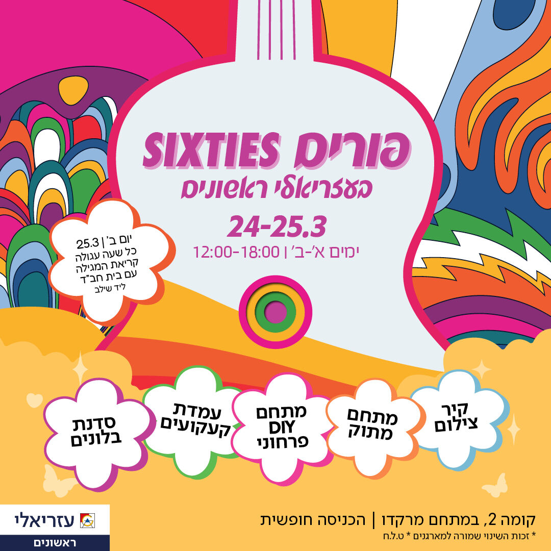 חג פורים חג גדול לילדים: קניון עזריאלי ראשונים מזמין אתכם לחגוג את חג פורים בקניון עם יומיים של סדנאות ופעילויות ססגוניות באווירת SIXTIES