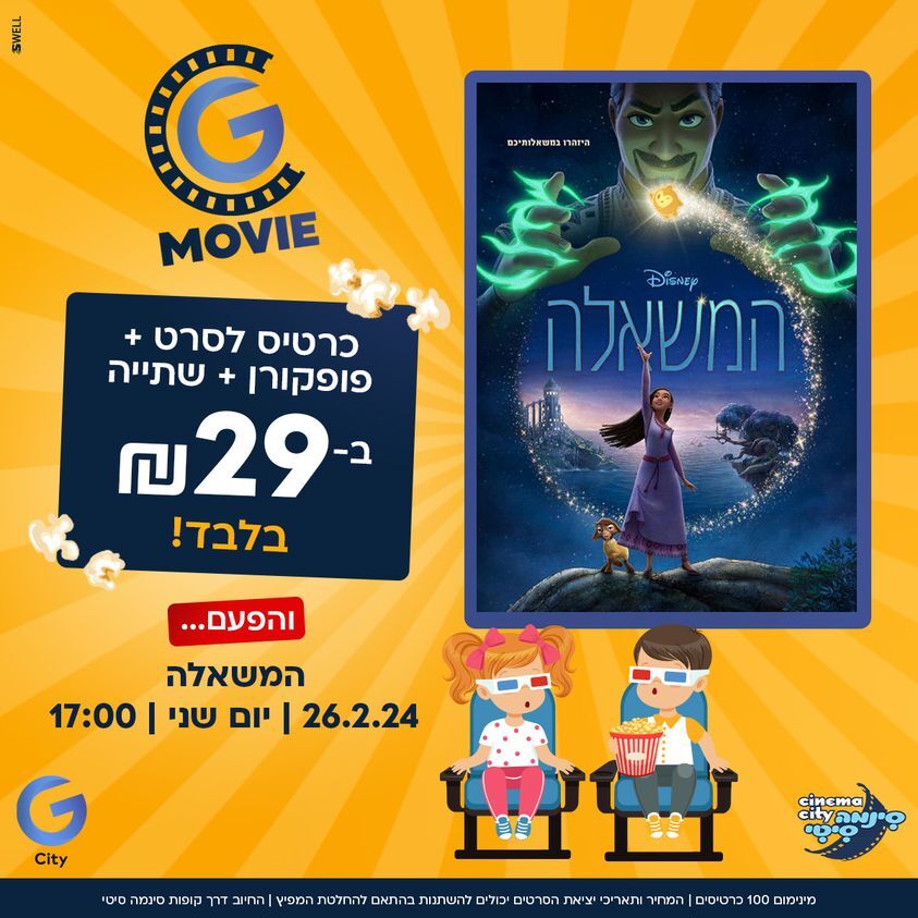 הפעילות תתקיים בימים ראשון ושני, 24-25 במרץ, בין השעות 11:00–13:30 ו-15:00–18:00, בקומת הכניסה של סינמה סיטי ב-G סיטי ראשון לציון.