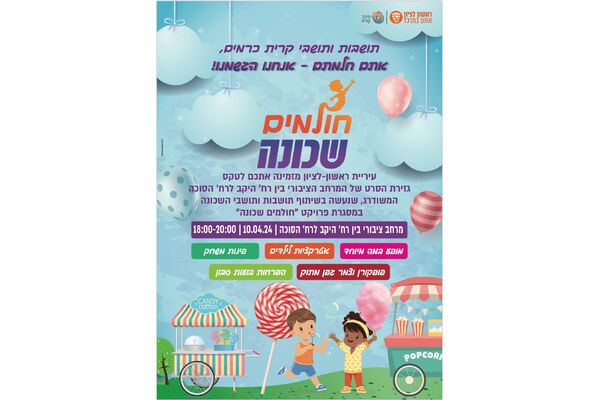 עיריית ראשון לציון מזמינה את תושבי שכונת כרמים להפנינג לכל המשפחה, וליהנות ממגוון פעילויות והפעלות: אטרקציות לילדים, מופע במה מיוחד, עמדות איפור וקעקועים, עמדות מזון ושתייה ועוד.