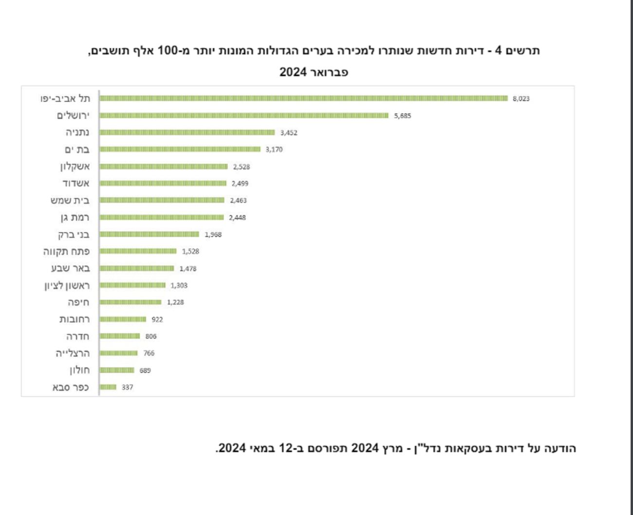הלמ"ס מפרסמת את הדו"ח עסקאות הנדל"ן בישראל לחודשים דצמבר 2023 - פברואר 2024.