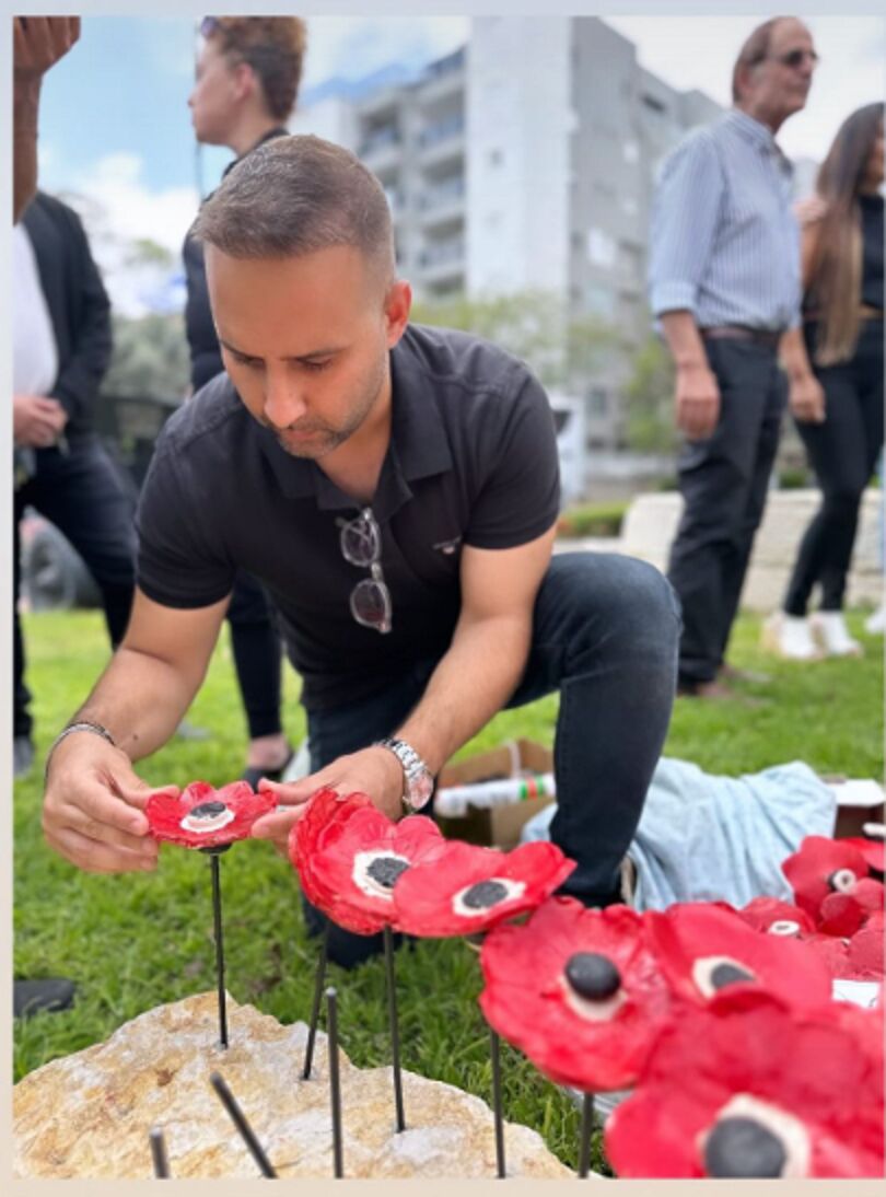"היה לי הזכות להוסיף למיצג פרח. אני מקדיש את הפרח לחברי הצעירים והגיבורים מראשון לציון שנרצחו ב7/10 השם יקום דמם"