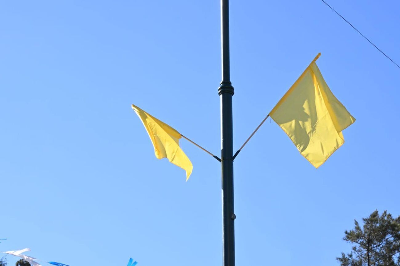 לצד הדגלים המסורתיים של מדינת ישראל, תלו בעיר גם דגלים צהובים כדי להביע זיקה ותמיכה במאמצים להחזיר הביתה את 132 החטופים והחטופות שנמצאים בשבי החמאס כבר 214 ימים. קינסטליך מביע תקווה שבשנה הבאה יוכלו לחגוג את יום העצמאות כשכולם חופשיים ובבתיהם.