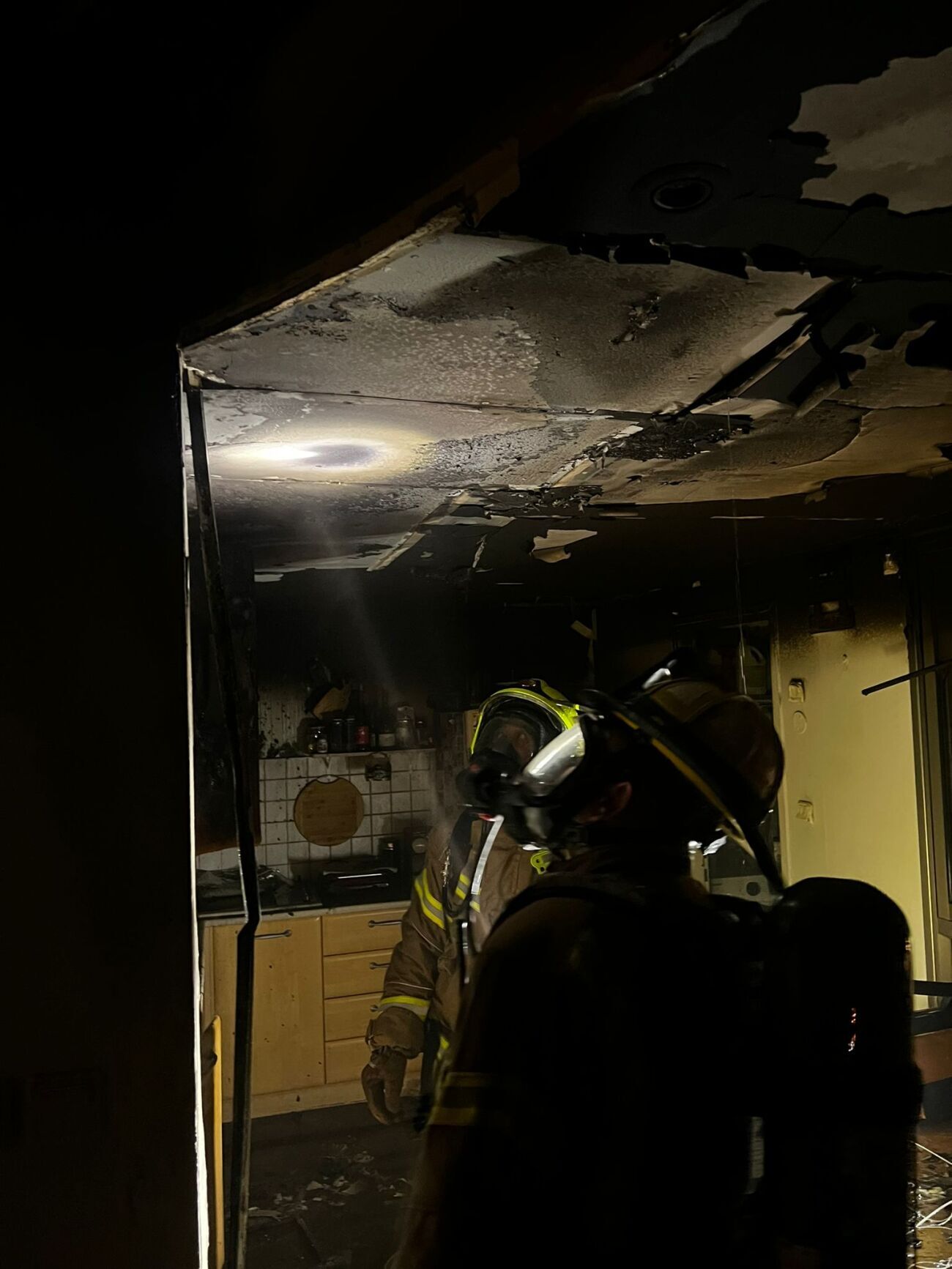 הלילה (ג') לוחמי האש פעלו בשריפת מטבח בקומה הרביעית מתוך עשר ברחוב מעגל השלום.