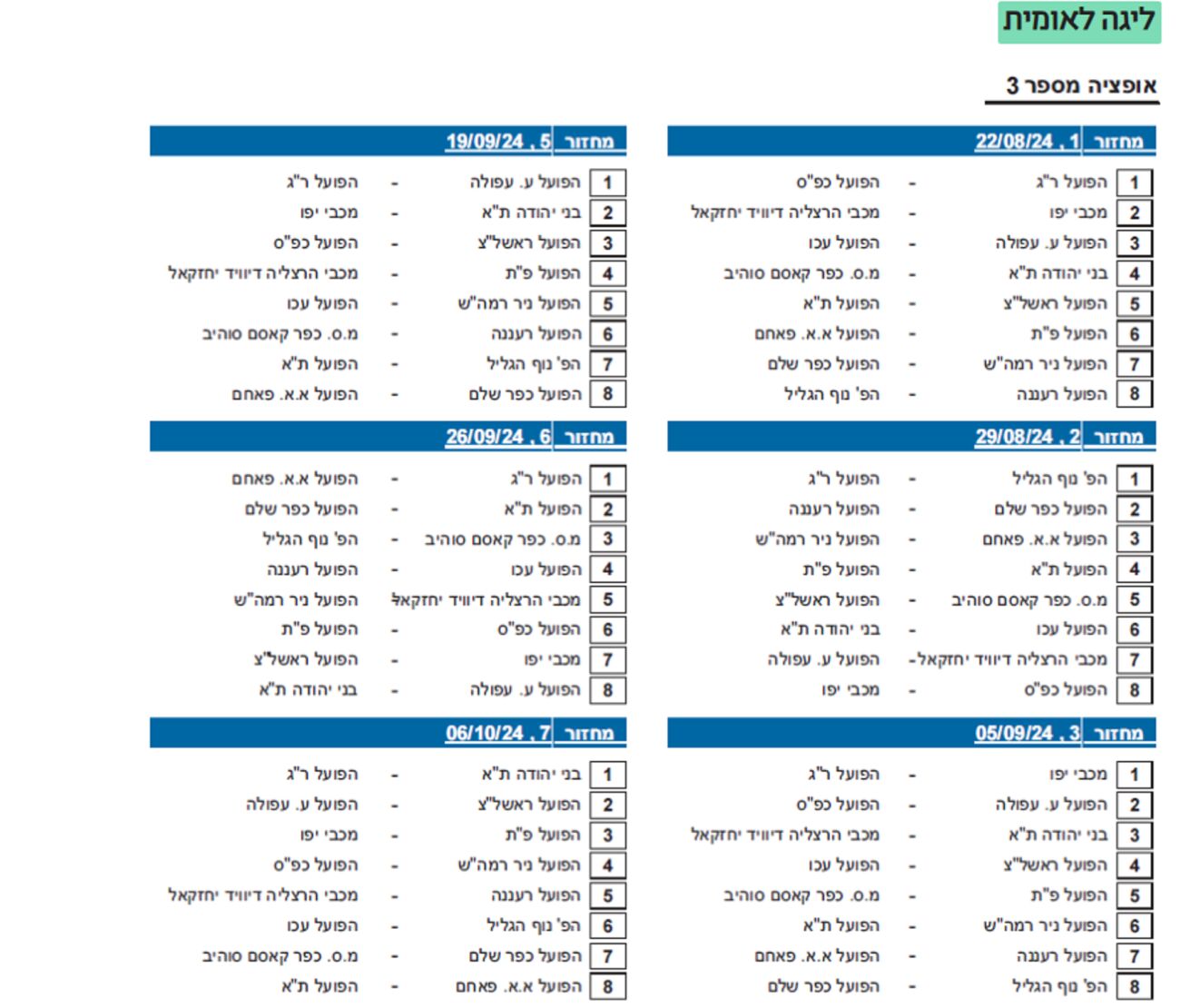 משחק הפתיחה של ראשון יהיה מול יפו, לאחר מכן מול פתח תקווה וכפר קאסם.
