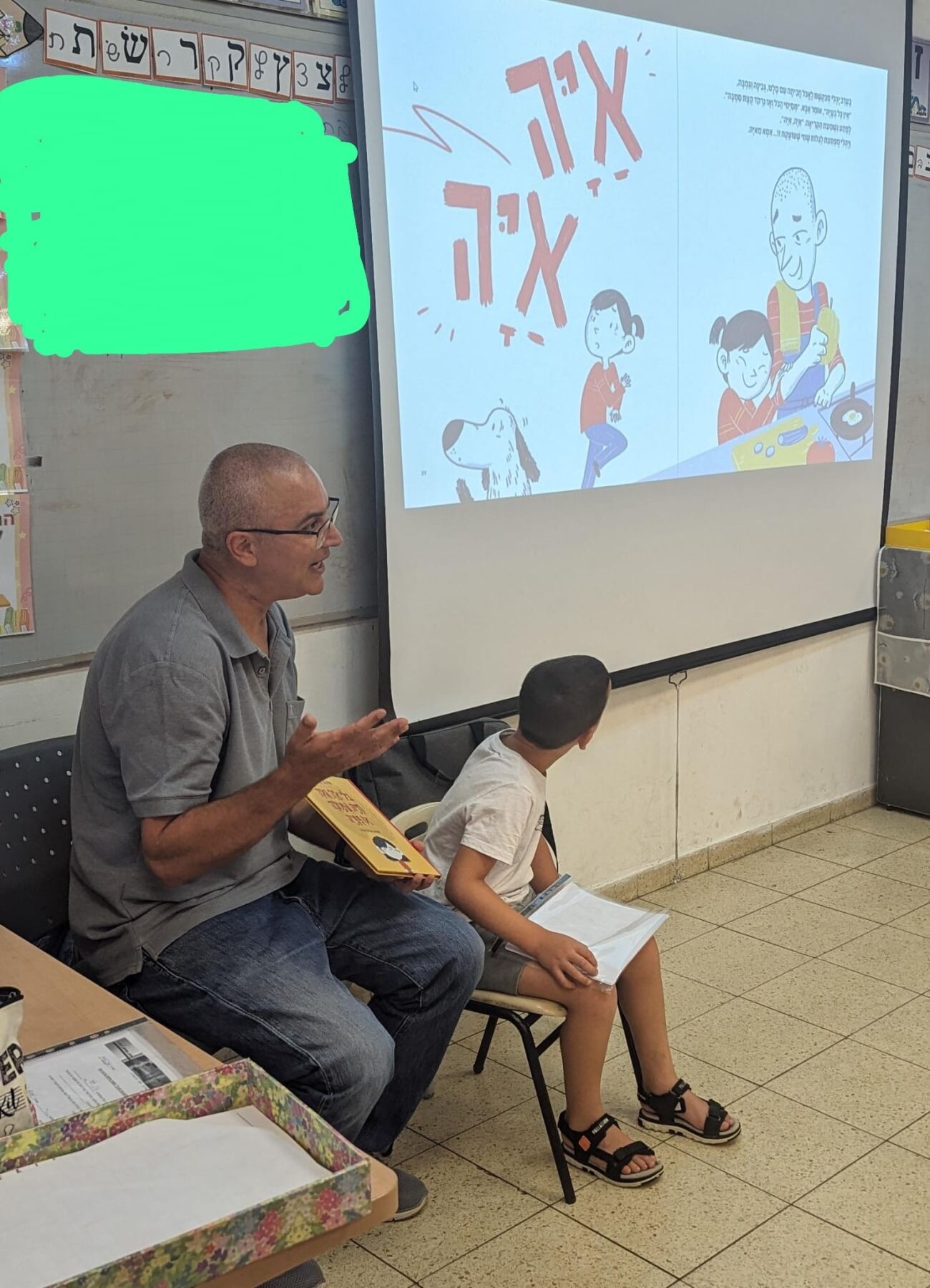הסופר והעיתונאי, עוז בן יצחק ערך שעת סיפור לילדי בית ספר רמז בראשון לציון - בית הספר בו למד כשהיה ילד