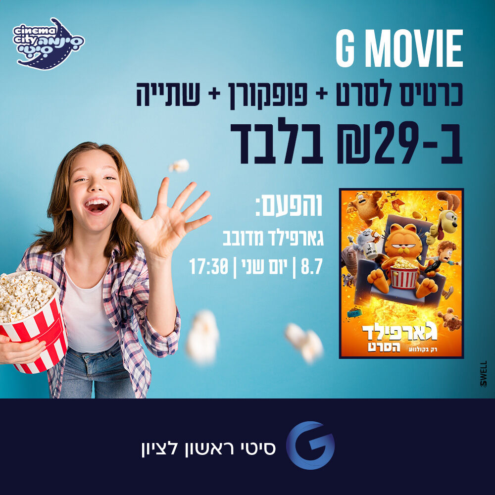חופשת הקיץ נפתחה ובמתחמי G במערב ראשון לציון מכינים שלל פעילויות להנאת המבקרים. בחודשים יולי-אוגוסט יהנו המבקרים ממתחמי פעילות לילדים בסימן המיניונים, פסטיבל הסרטים וחוף הים, הופעה של עדן הראל ועודד מנשה, סרטים ב29 ש"ח, שעות סיפור ועוד.