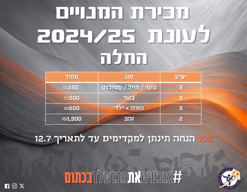 רגע לפני תחילת עונת 2024/25 מועדון הפועל ראשון לציון הכדורגל החל במכירת המנויים לעונה הקרובה.