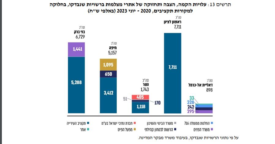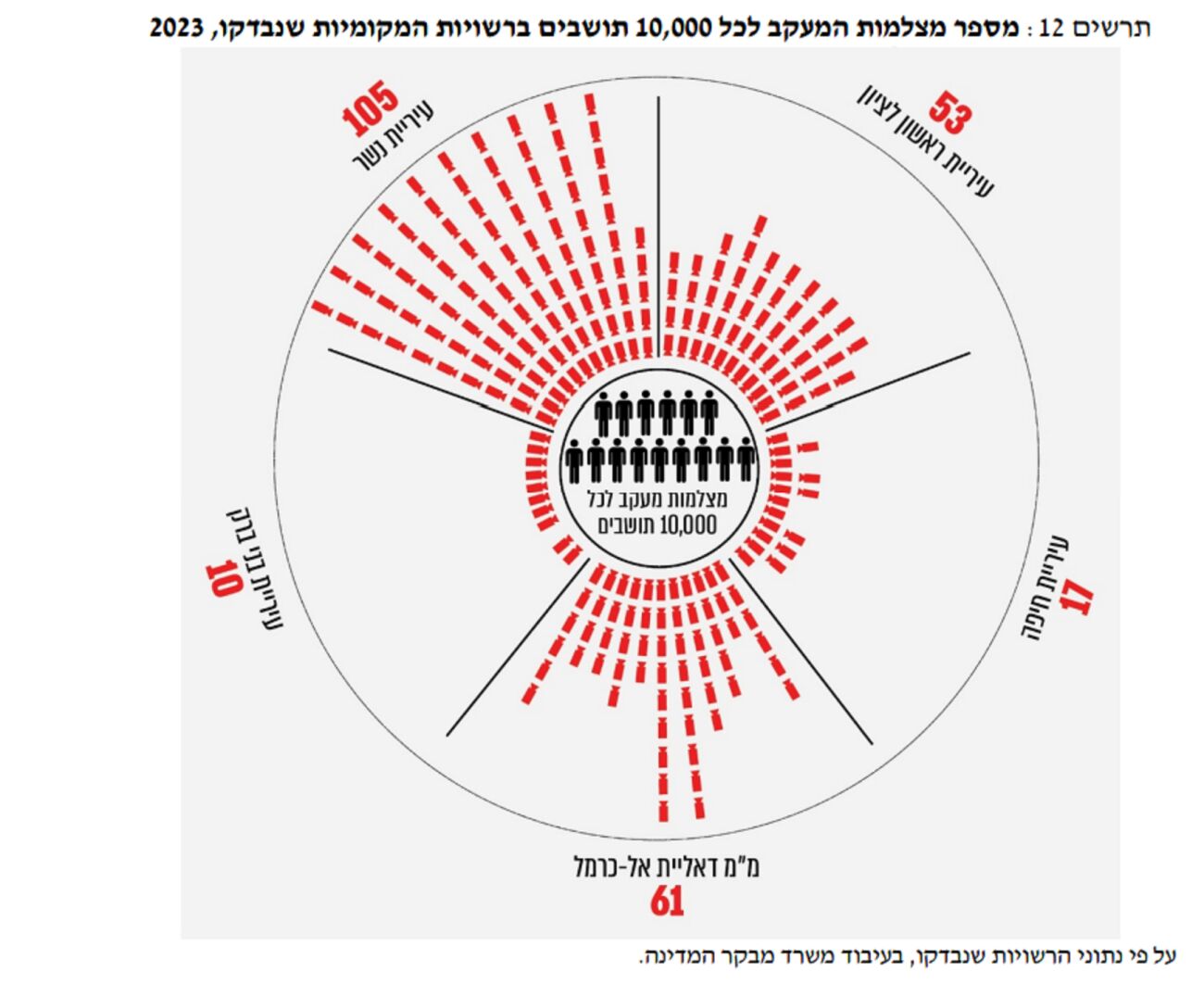 הדוח כולל בין היתר ביקורת על הצבת המצלמות המעקב במרחב הציבורי ברשויות חיפה, דלית אל כרמל, בני ברק, נשר וראשון לציון.