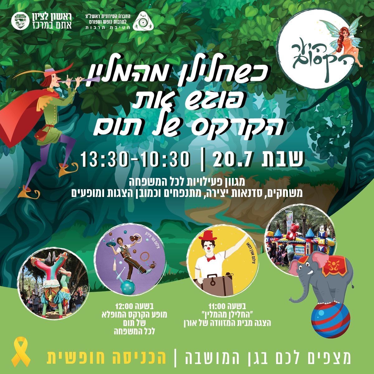 שבת מופלאה ביער הקסום בראשון לציון - ההצגה "החלילן מהמלין", מופע הקרקס המופלא של תום, יצירות אומנות, איפור פנים קסום, מגלשות, משחקי מים ושכשוך בקצף, בנייה בלגו ענק, 20/7 החל מהשעה 10:30