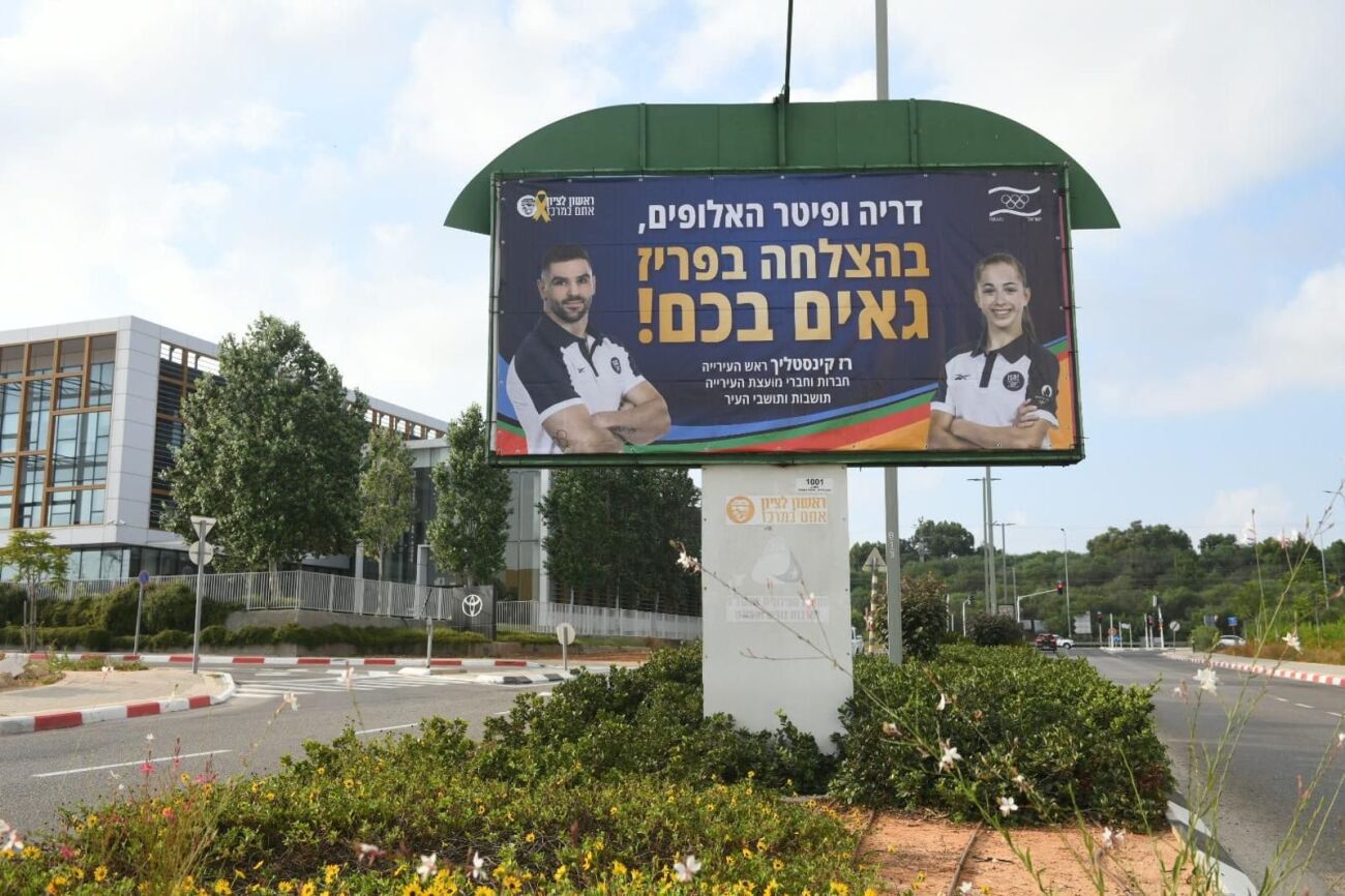 עיריית ראשון לציון יצאה בקמפיין שילוט חוצות המעודד את דריה אטמנוב ופיטר פלצ'יק שייצגו את העיר באולימפיאדת פריז