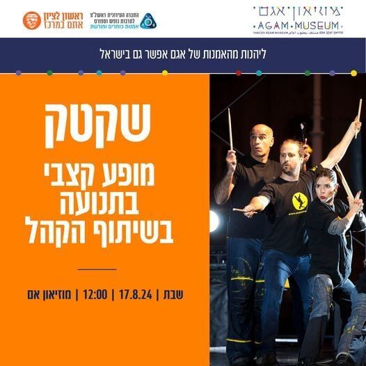 בילוי משפחתי היום שבת בשעה 12:00 במוזיאון אגם ראשון לציון! מופע "שקטק" אינטראקטיבי, קצבי וסוחף בו תוכלו לשחרר את הדמיון ואת הגוף במופע קצבי בתנועה, תיפוף גוף, קטע מקלות, סטפס, היפ פופ, ברייקדאנס, קטעי תופים, בהשתתפות ההורים והילדים .כרטיסים 03-5555-900
