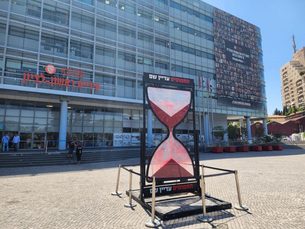 היום הוצב שעון חול ברחבת עיריית ראשון לציון להעלאת המודעות לשחרור החטופים הנמצאים מעל 300 ימים בשבי החמאס. מדובר על יוזמה משותפת של מטה החטופים המקומי הארצי, כתזכורת כואבת לכולנו על זמנם ההולך ואוזל של החטופים. לאורך החודשים האחרונים הוצב השעון במוקדים שונים בערי ישראל.