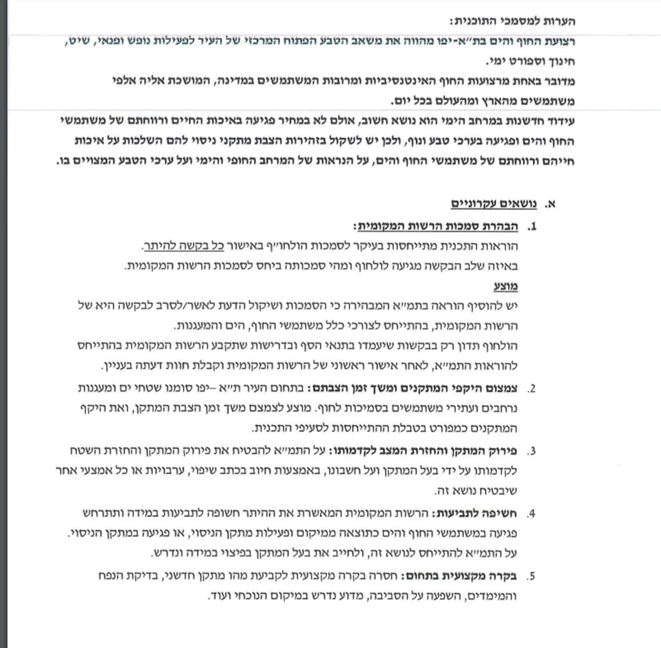 במידה והדבר לא יאושר הם מבקשים להסיר את השטח בו אמור להיות שובר הגלים מהתוכנית.