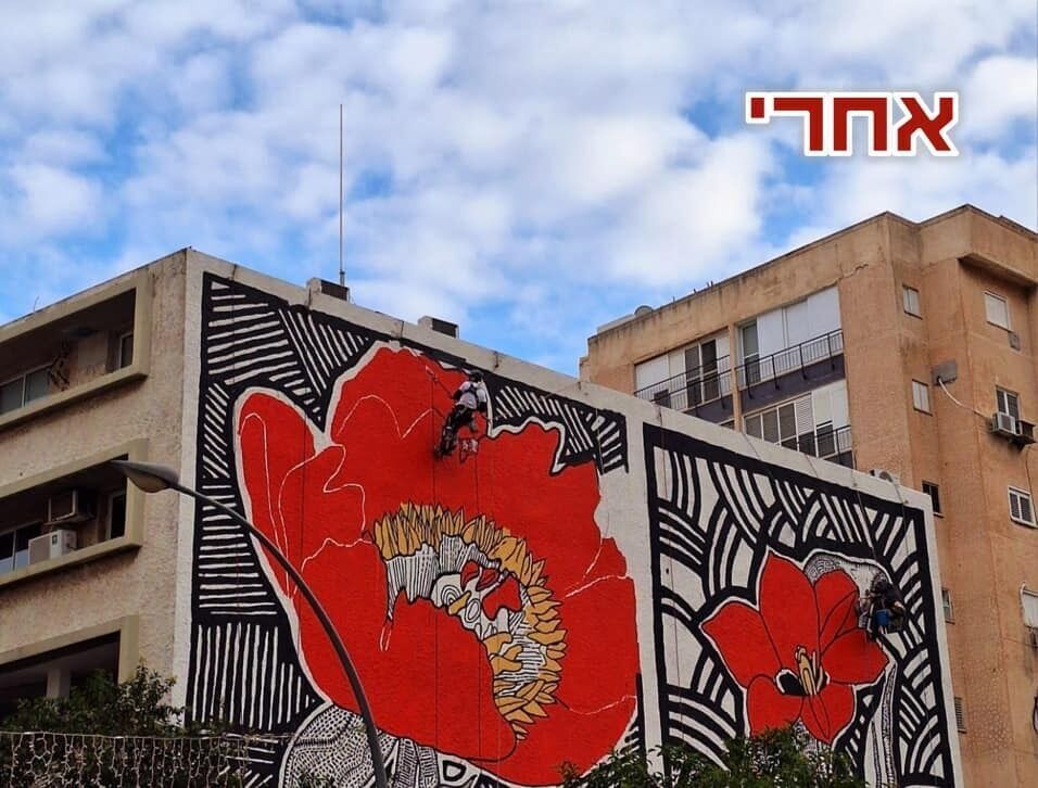 ציור קיר חדש ברחוב רוטשילד: כלניות אדומות של האמן גרי גולדשטיין