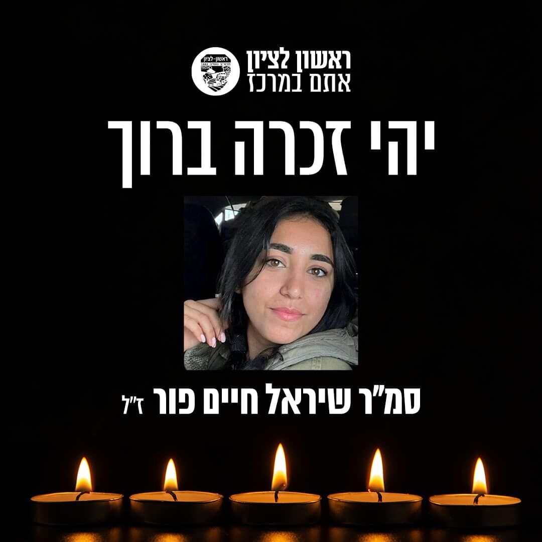 סמלת שיראל חיים פור ז"ל בת 20 מראשון לציון נהרגה בלחימה בעוטף עזה