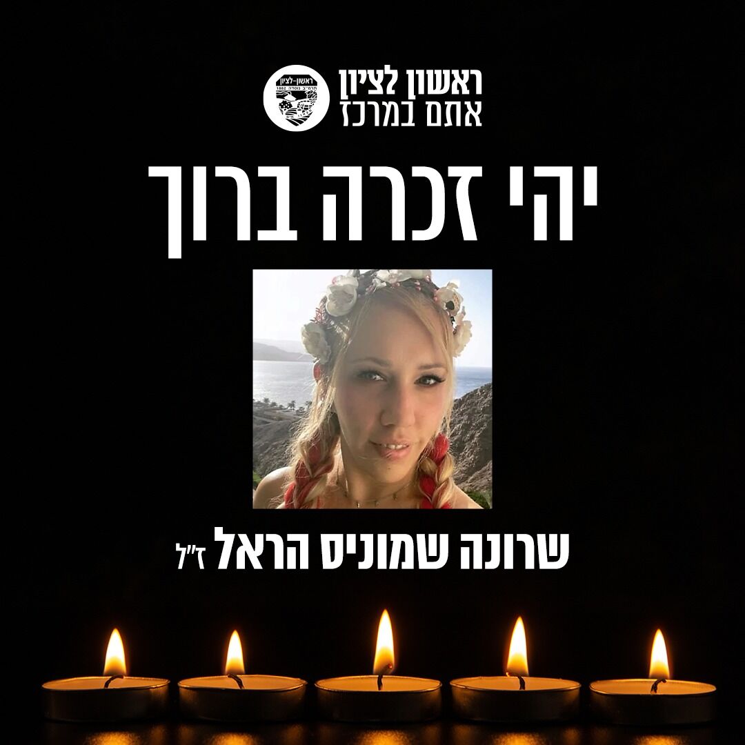 ראשון לציון כואבת ובוכה את רציחתה של שרונה שמוניס הראל הי"ד, בת 40 אמא ל - 2 ילדים קטנים