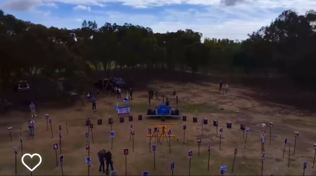 D.J סקאזי תושב ראשון לציון הופיע במתחם מסיבת הנובה כאשר מולו הוצבו תמונותיהם של חללי המסיבה והחטופים