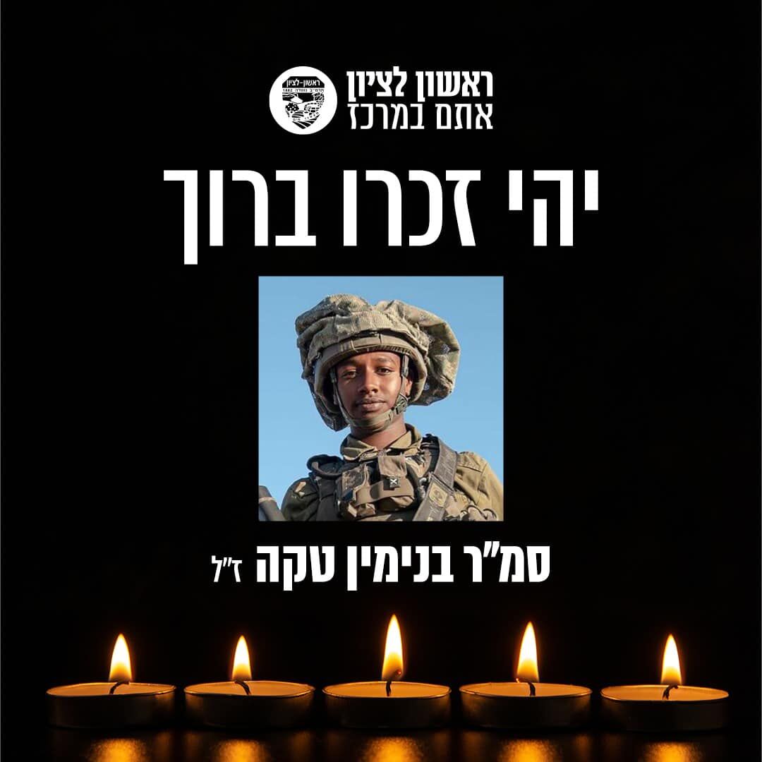ראשון לציון מרכינה את ראשה על לכתו של סמ״ר בני בנימין טקה שנפל במוצב בכיסופים