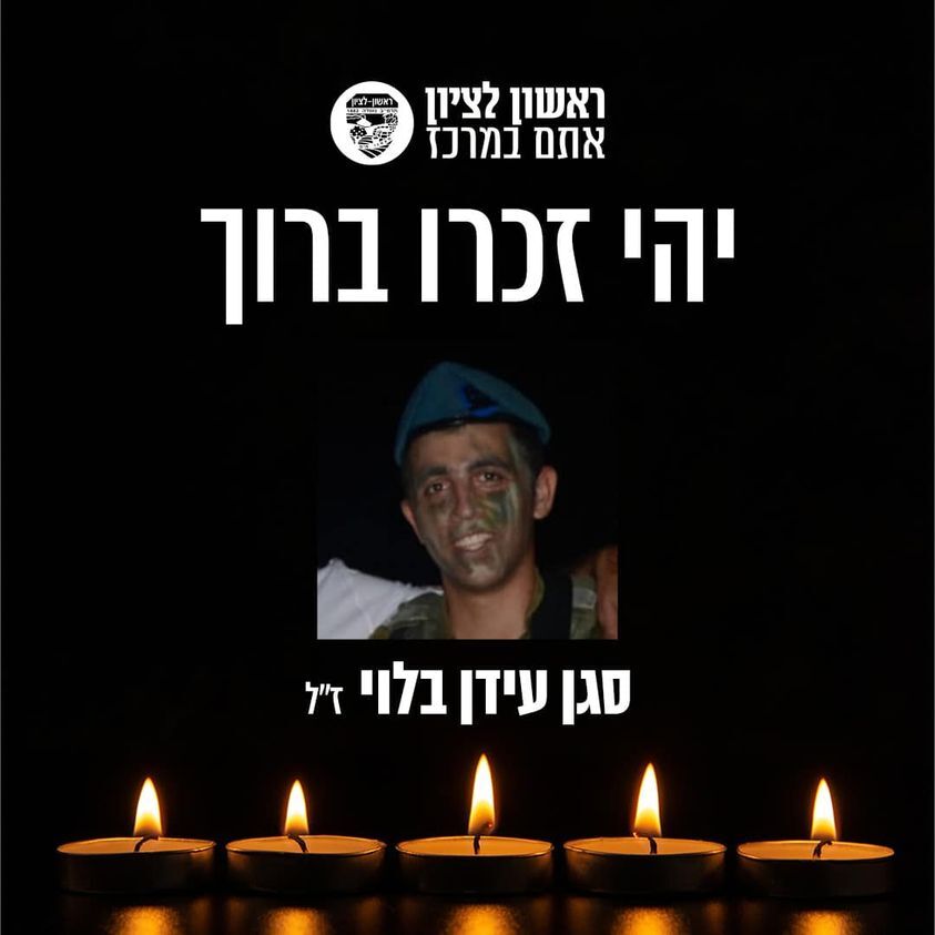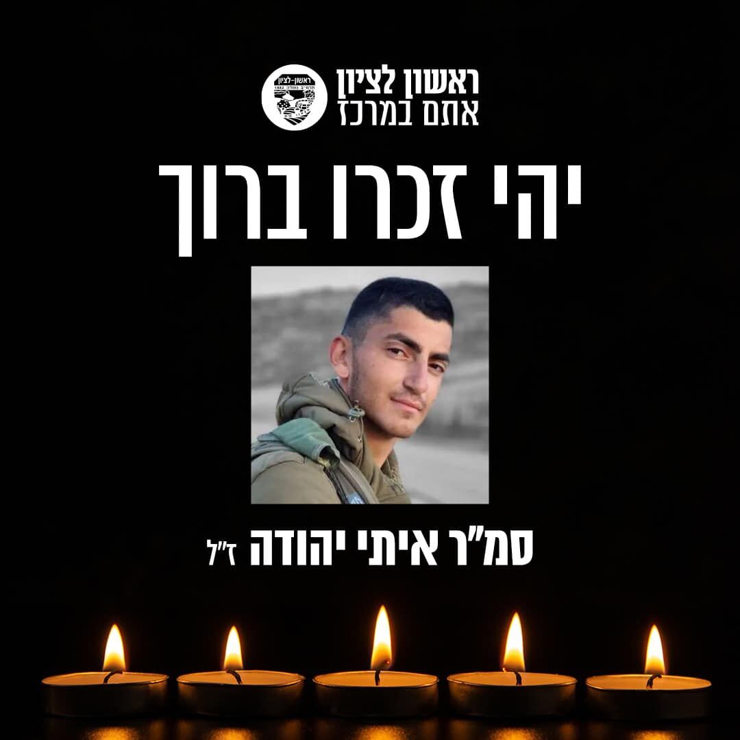 ראשון לציון מרכינה את ראשה על מותו של לוחם גבעתי סמ"ר איתי יהודה ז"ל שנפל בקרב על הגנת המדינה