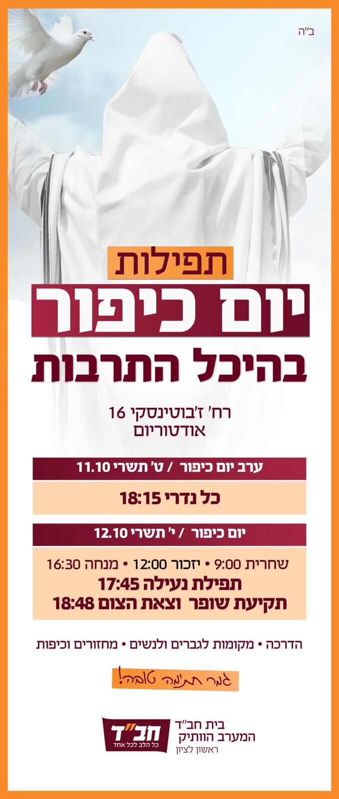 כל הפרטים על תפילות בתי חב"ד בכ30 מוקדים ברחבי ראשון לציון במסגרת מיזם בית הכנסת הפתוח