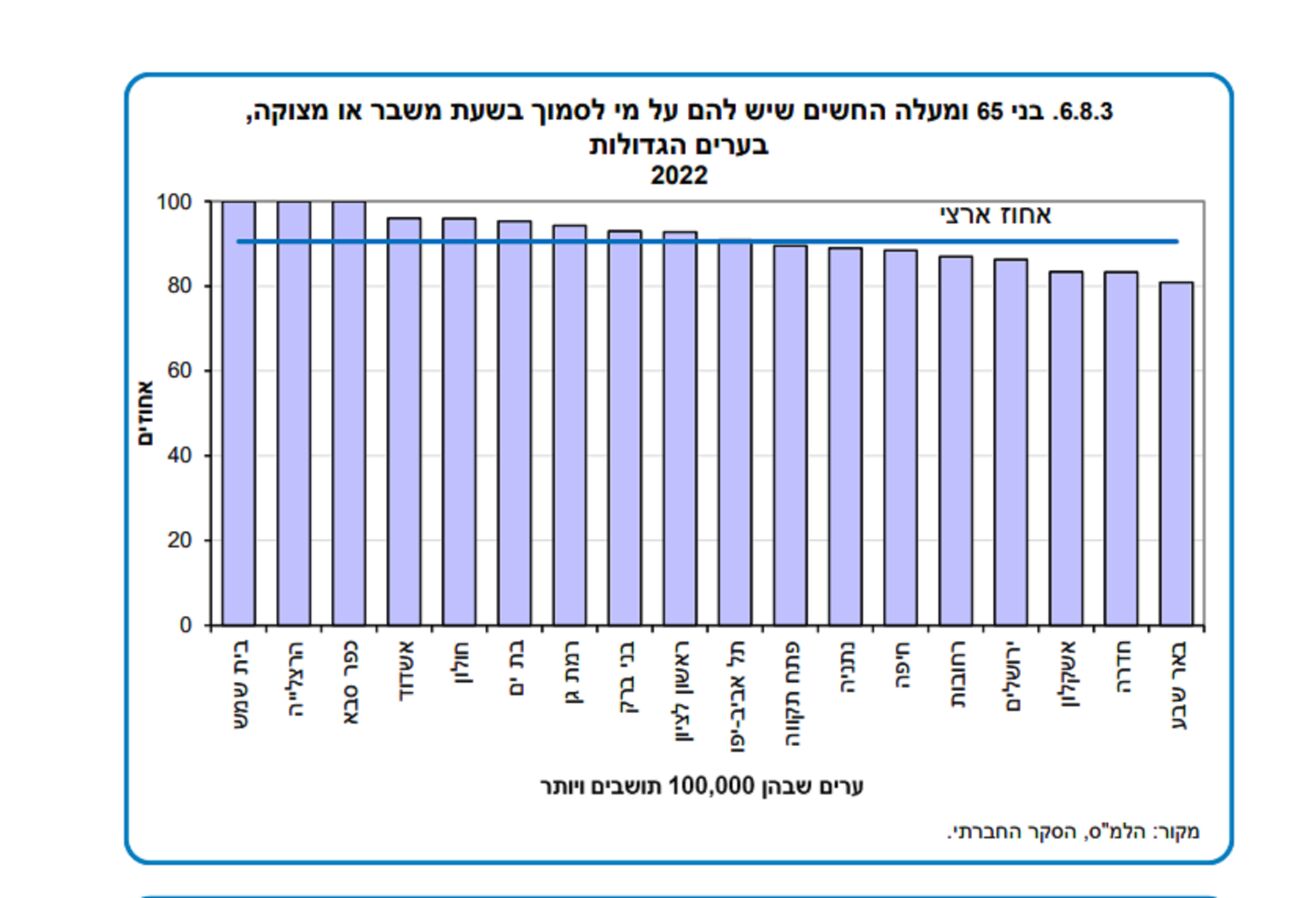 90.5% חשים שיש להם על מי לסמוך בשעת משבר או מצוקה. העיר המובילה מבין הערים הגדולות הן בית שמש, הרצליה וכפר סבא.