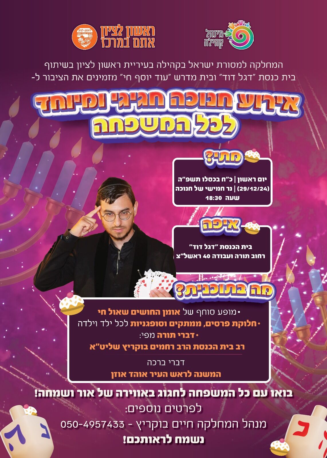 יום ראשון 29.12.24 מסיבת חנוכה בבית כנסת דגל דוד
