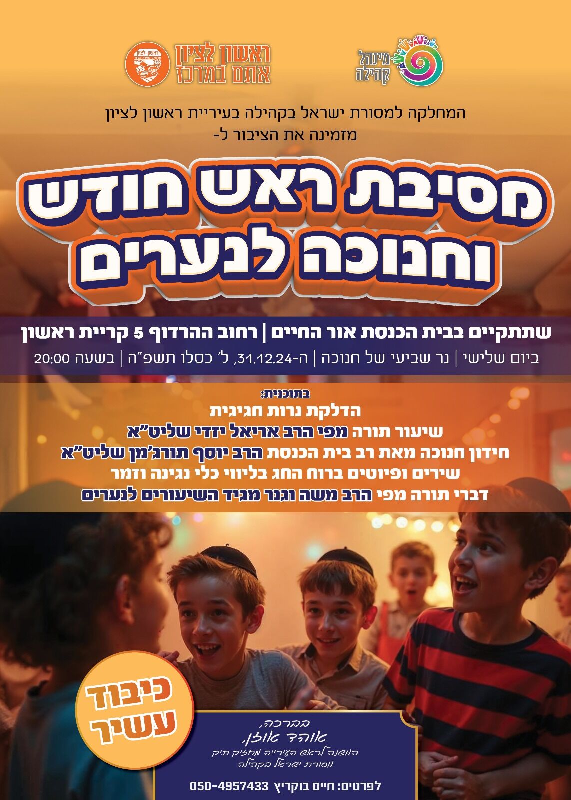 יום שלישי 31.12.24 מסיבה לנוער בית הכנסת אור החיים