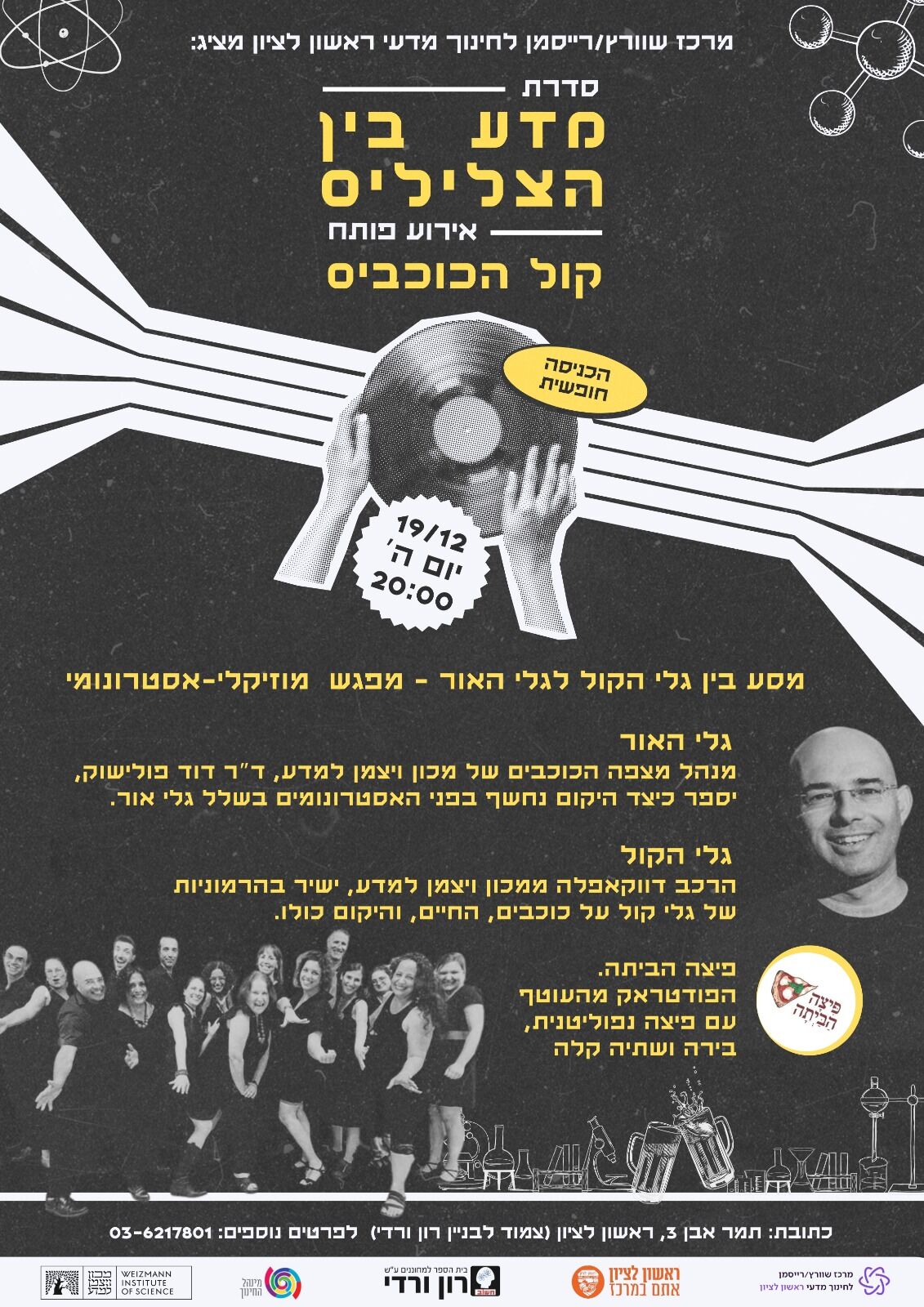 מתי? יום חמישי 19.12.2024 בשעה 20:00 מרכז שוורץ/רייסמן לחינוך מדעי, ראשון לציון