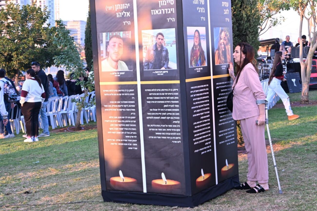 מיצגי זיכרון עם תמונותיהם וסיפוריהם של בני ובנות ראשון לציון שנרצחו בטבח ה7 באוקטובר וחרבות ברזל הוצבו באתר ההנצחה שעתיד לקום במערב העיר
