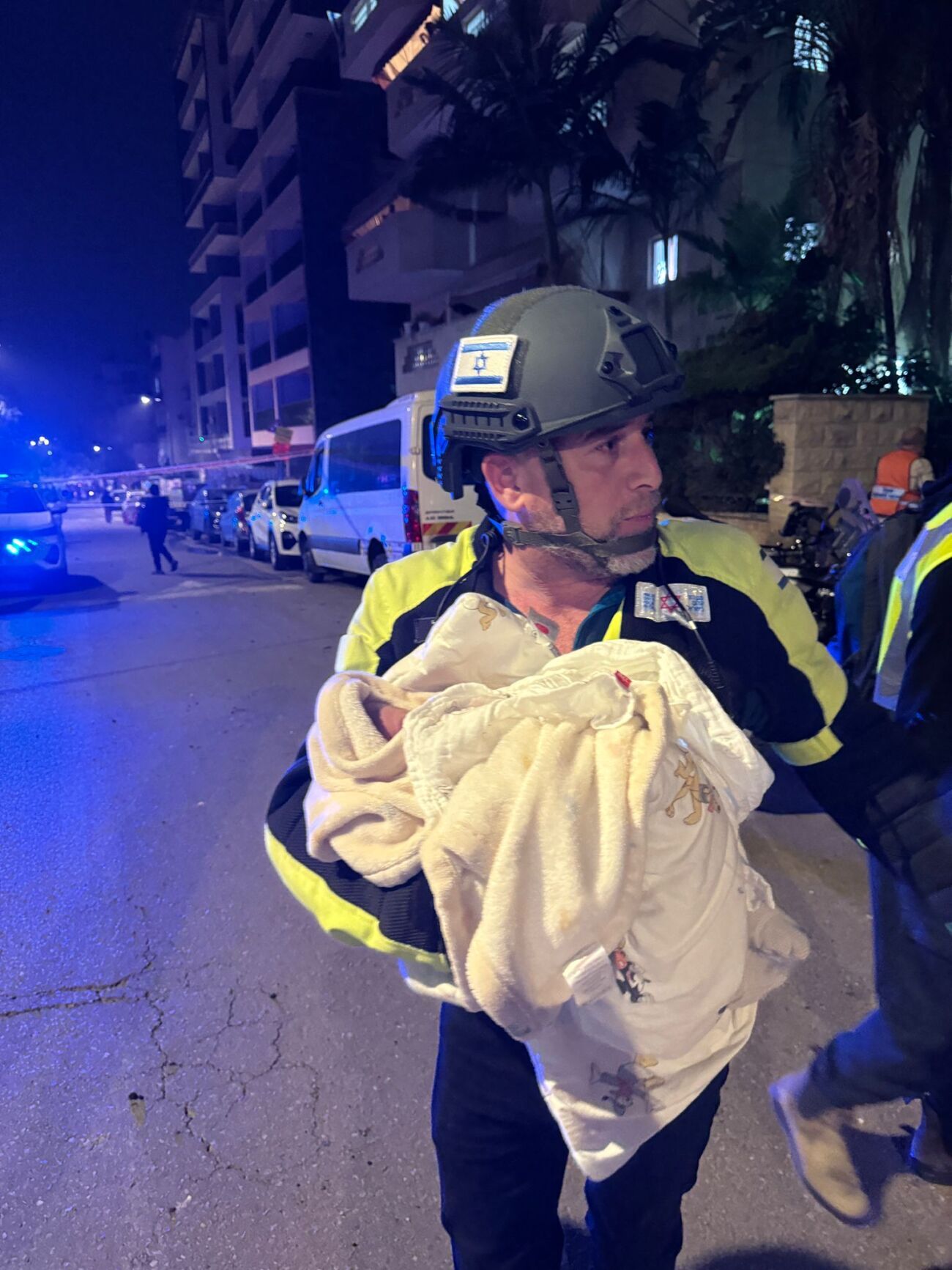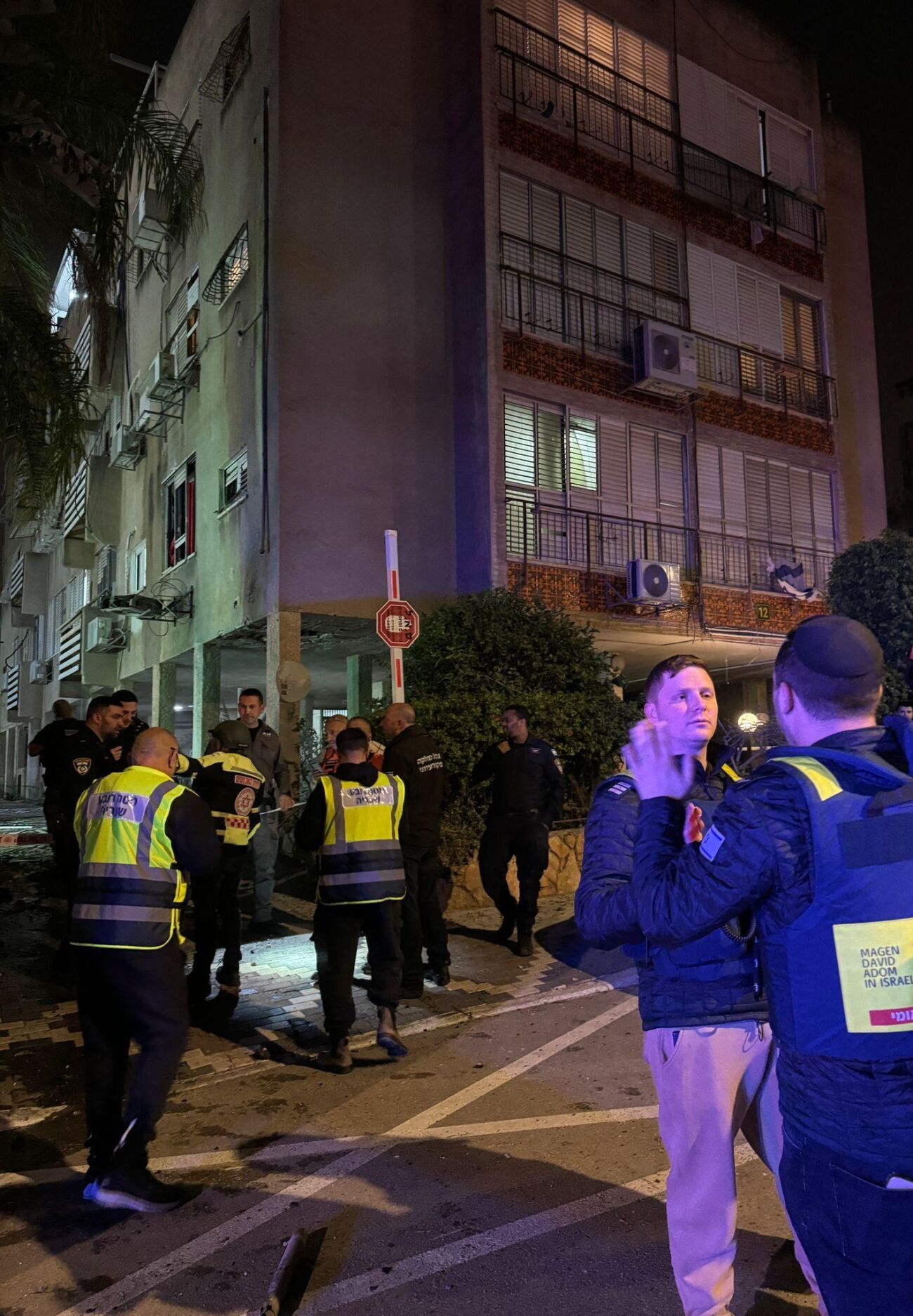 חובש בכיר במד"א, ליאור פז, סיפר ממראות השטח: "קיבלנו דיווחים על מספר זירות נפילה ויצאנו באמבולנסים, ניידות טיפול נמרץ ואופנועי מד"א למקום. הגענו לזירות תוך דקות בודדות וראינו הרס, אש, זכוכיות מנופצות על הרצפה ועשן רב. התחלנו בסריקות נרחבות במקום, ולמזלנו לא אותרו נפגעים בגוף. אנחנו ממשיכים לסרוק את הזירות ונישאר כאן ככל שיידרש".