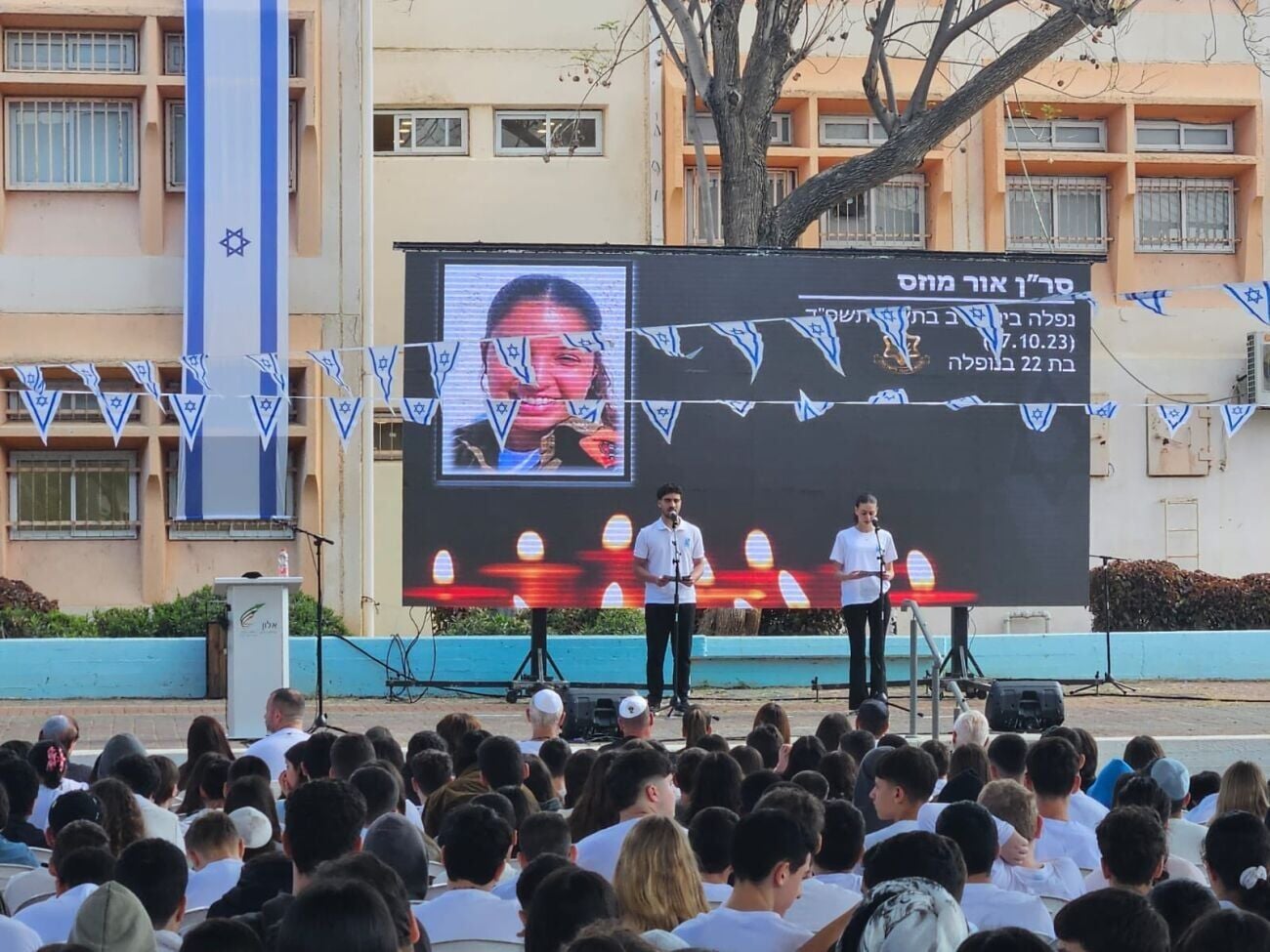 - 19:50 - טקס זיכרון, חצר בית הספר "חופית", רחוב חיל הצנחנים 5, שכונת נווה חוף.